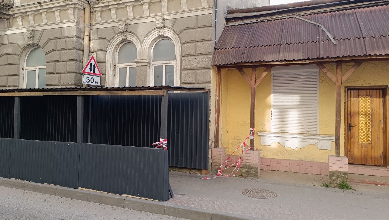 Проте нещодавно огородження замінили. Будівлю обгородили металевими листами і зробили прохід зі сторони вулиці Франка із накриттям. Конструкція нагадує будівельну, тож редакція звернулась до міської за коментарем, що саме планують робити із пам’яткою архітектури, приміщенням колишньої залізничної лікарні.