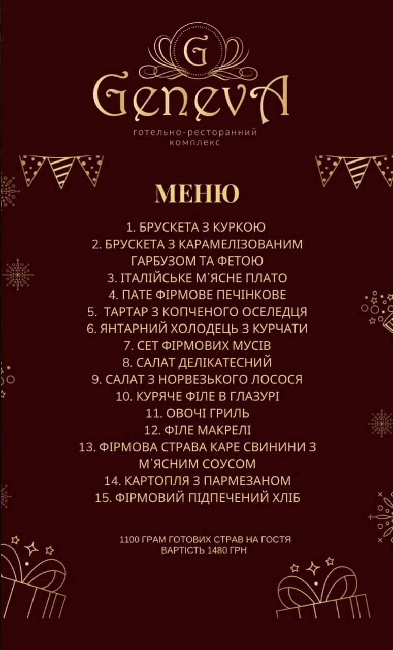 Святкове меню для ваших особливих свят готові не лише приготувати та подати у закладі, а за потреби й доставити до офісу, відпочинкового будинку чи дому.
