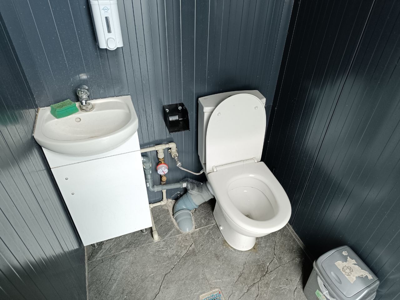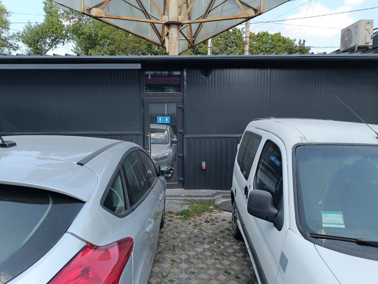 Вбиральня розташована із внутрішньої сторони кіосків, де стоянка автомобілів. Про туалет на дверях інформують дві умовні наліпки чоловіка і жінки. Всередині досить чисто, є вода, мило.