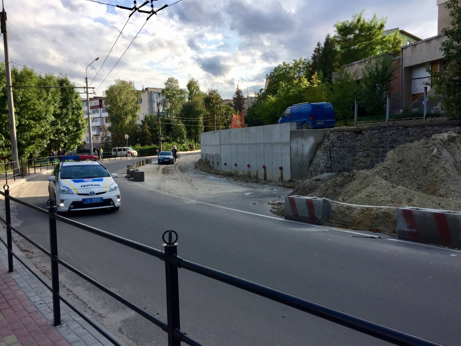 Нагадаємо, підпірна стіна на вул. Миру обвалилась на дорогу в червні. На час ремонту одну смугу руху перекрили. Громадський транспорт курсує без змін. А от власники авто змушені їхати в об’їзд.