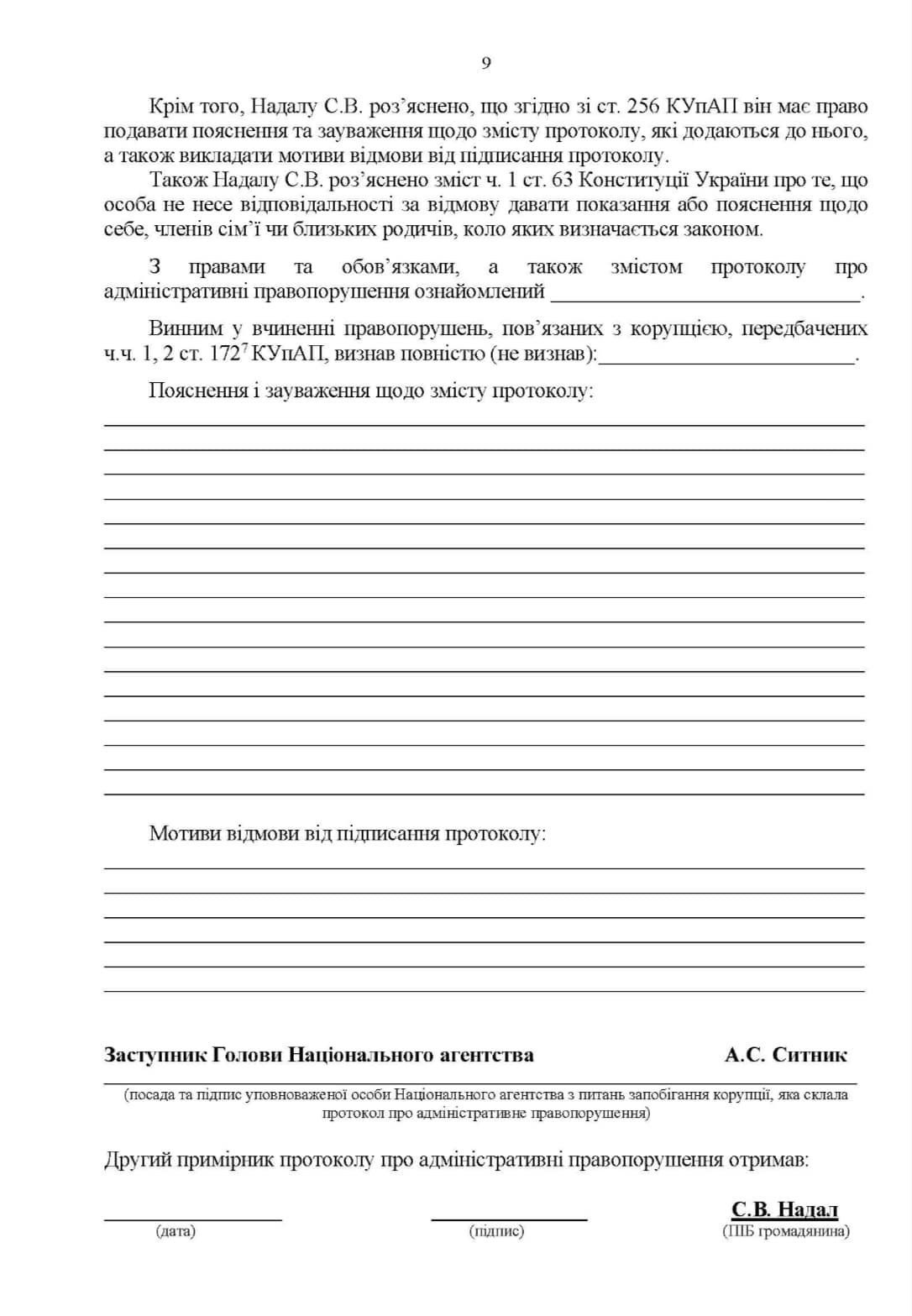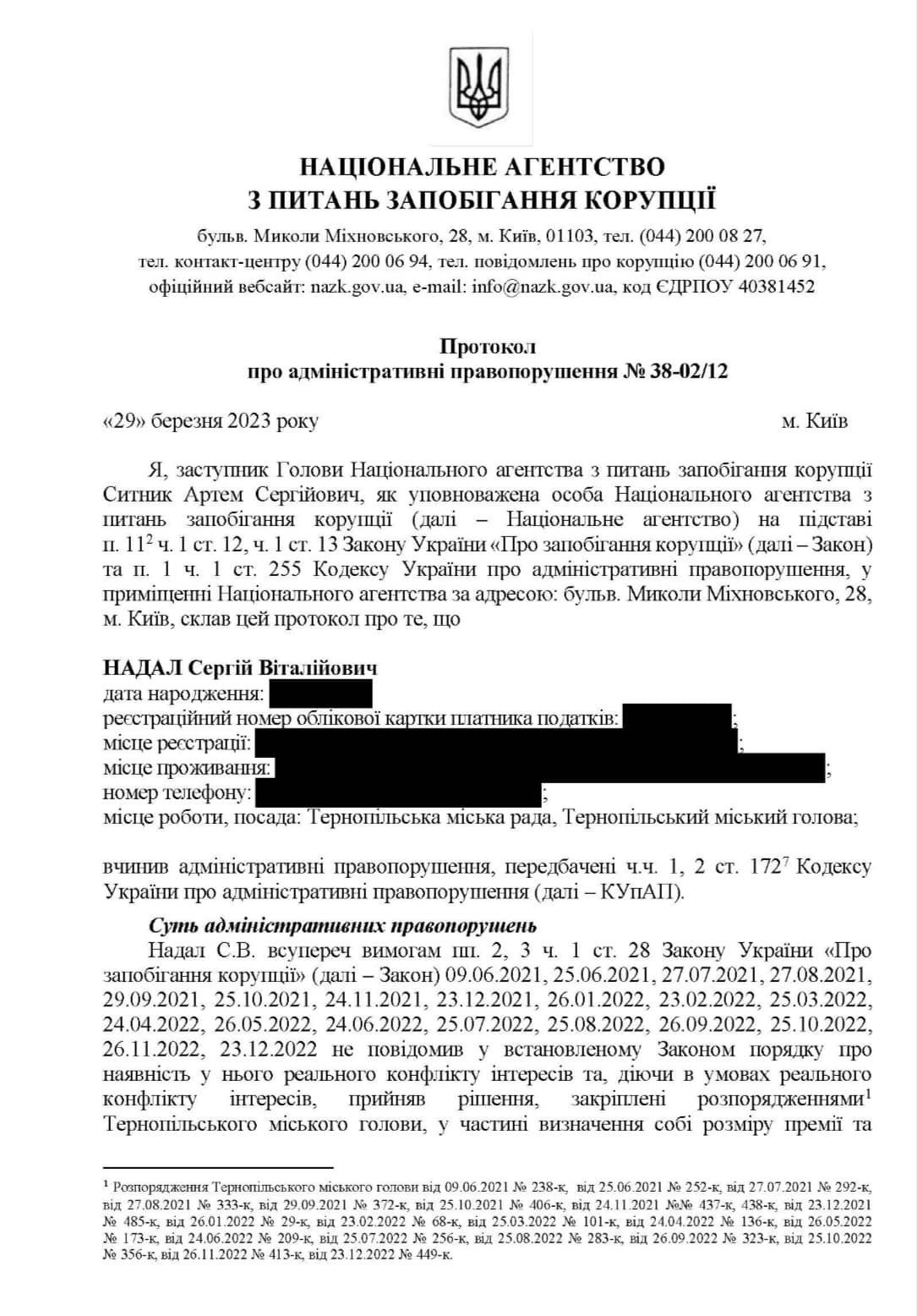 Опублікували копію адмінпротоколу, складеного на Сергія Надала за те, що він виписував собі захмарні премії