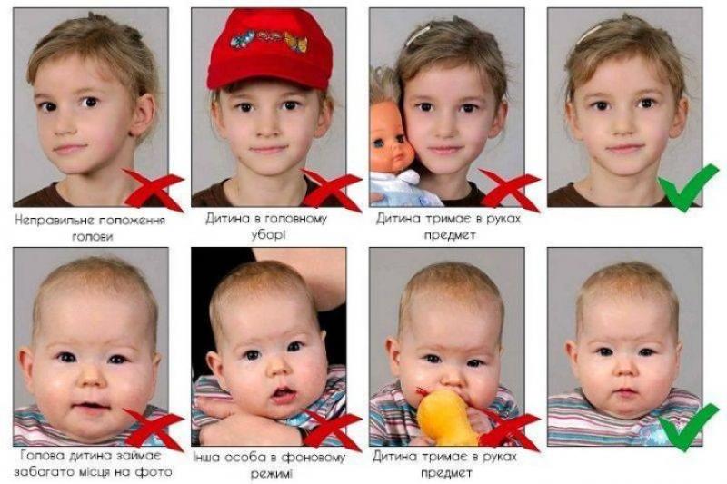 Дитину будь-якого віку можуть сфотографувати в міграційній службі при подачі документів, але якщо у вашої дитини (віком до 12 років) з фотографуванням можуть виникнути проблеми — лякається фотоспалаху, не може всидіти на місці, не закривати очей більше 2 секунд або дитина перебуває в даний момент в місцях відпочинку, лікування, тощо, у Міграційній службі рекомендують скористатися послугами фотоательє та принести одну фотокартку.