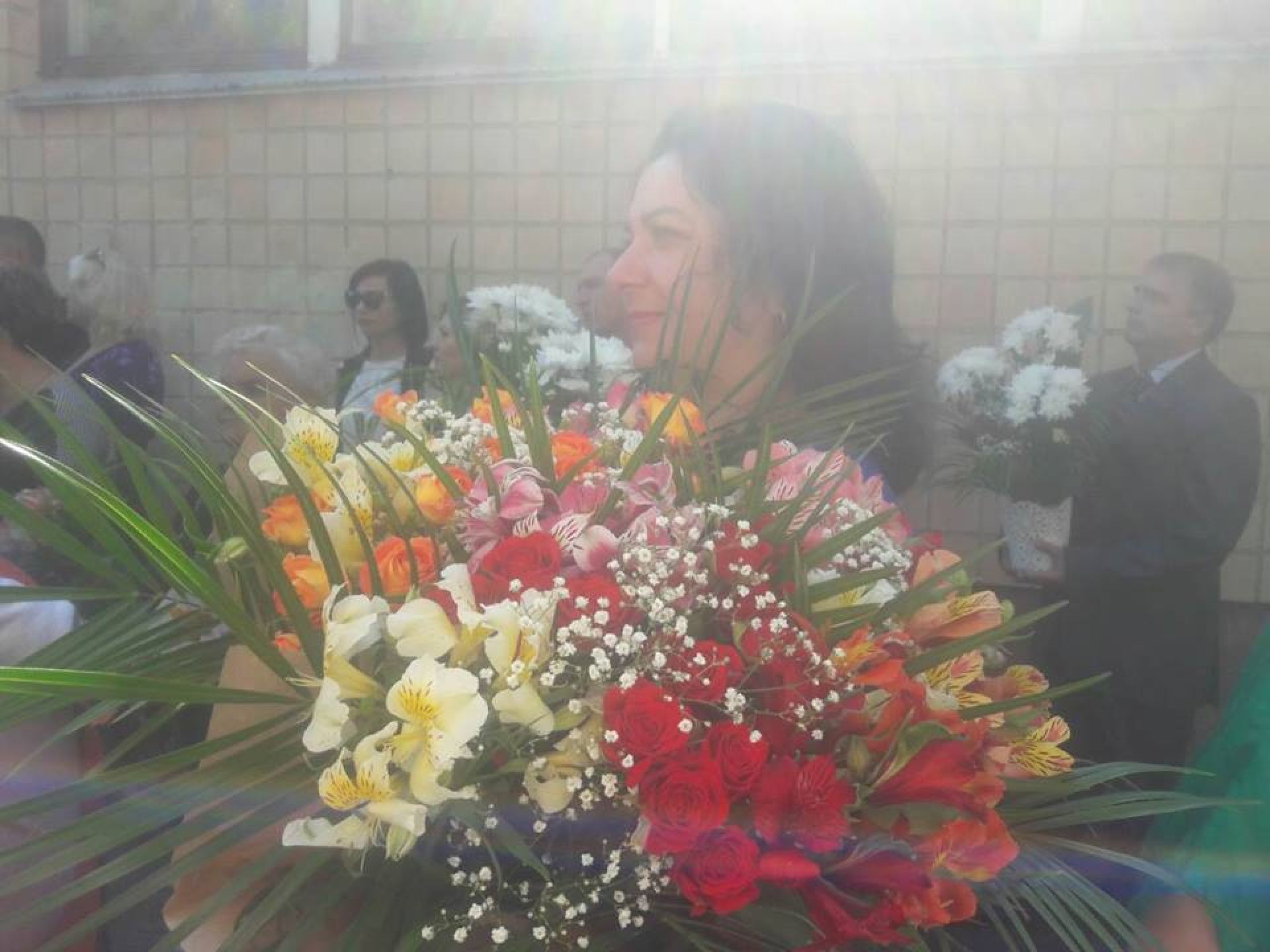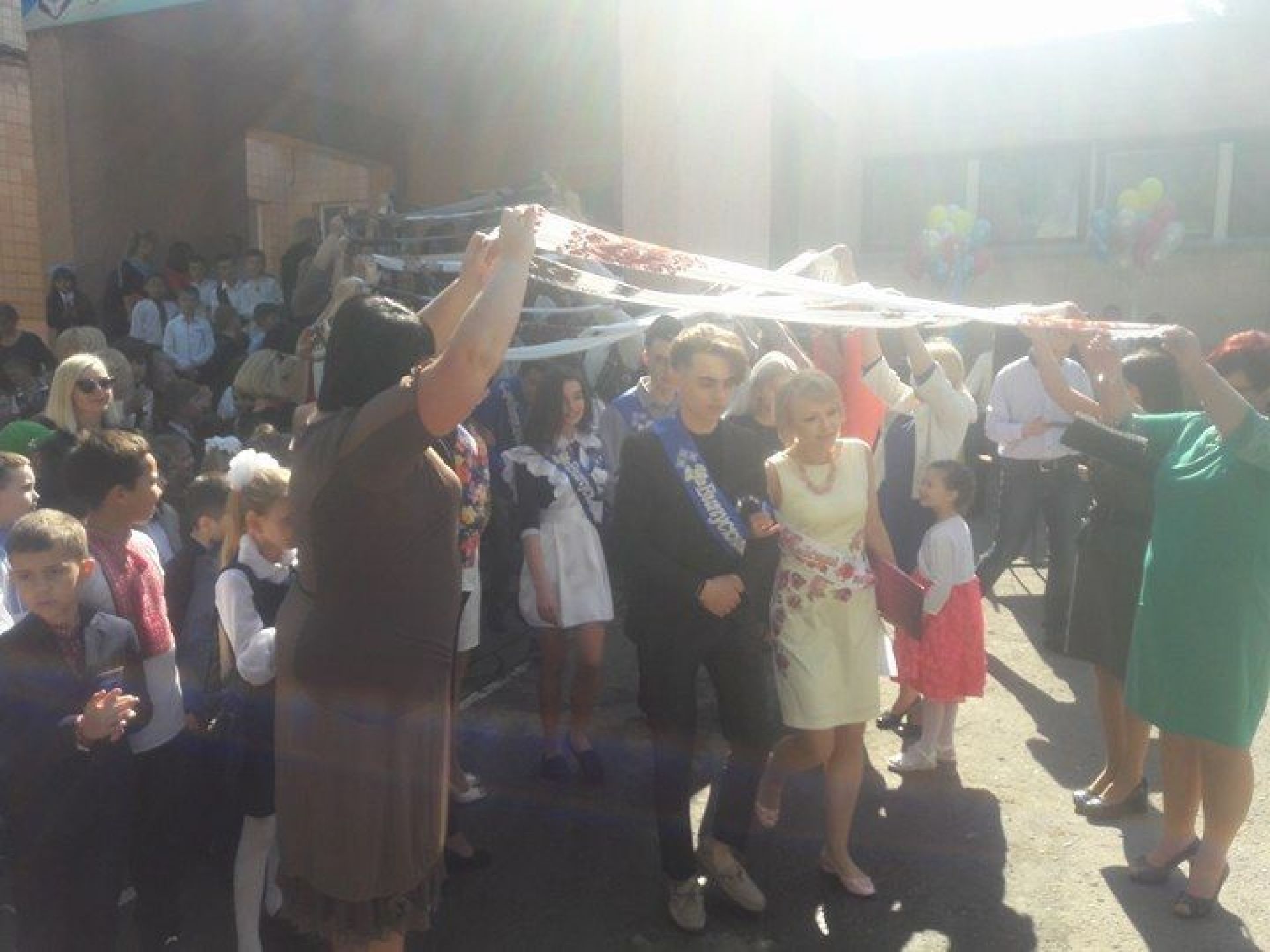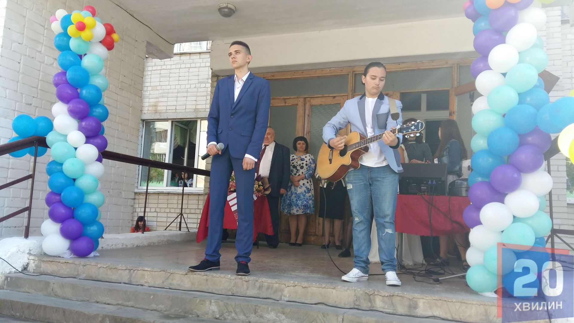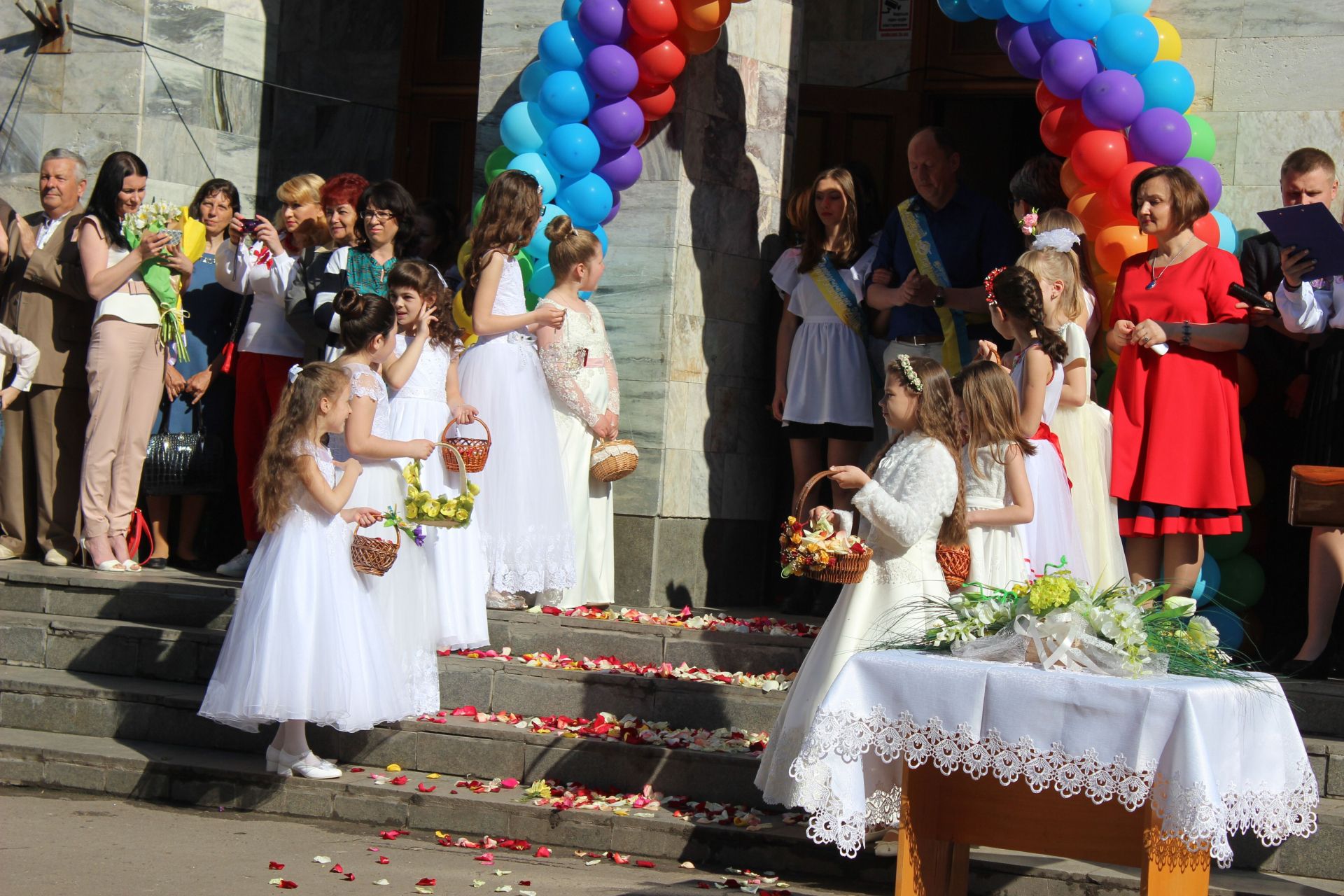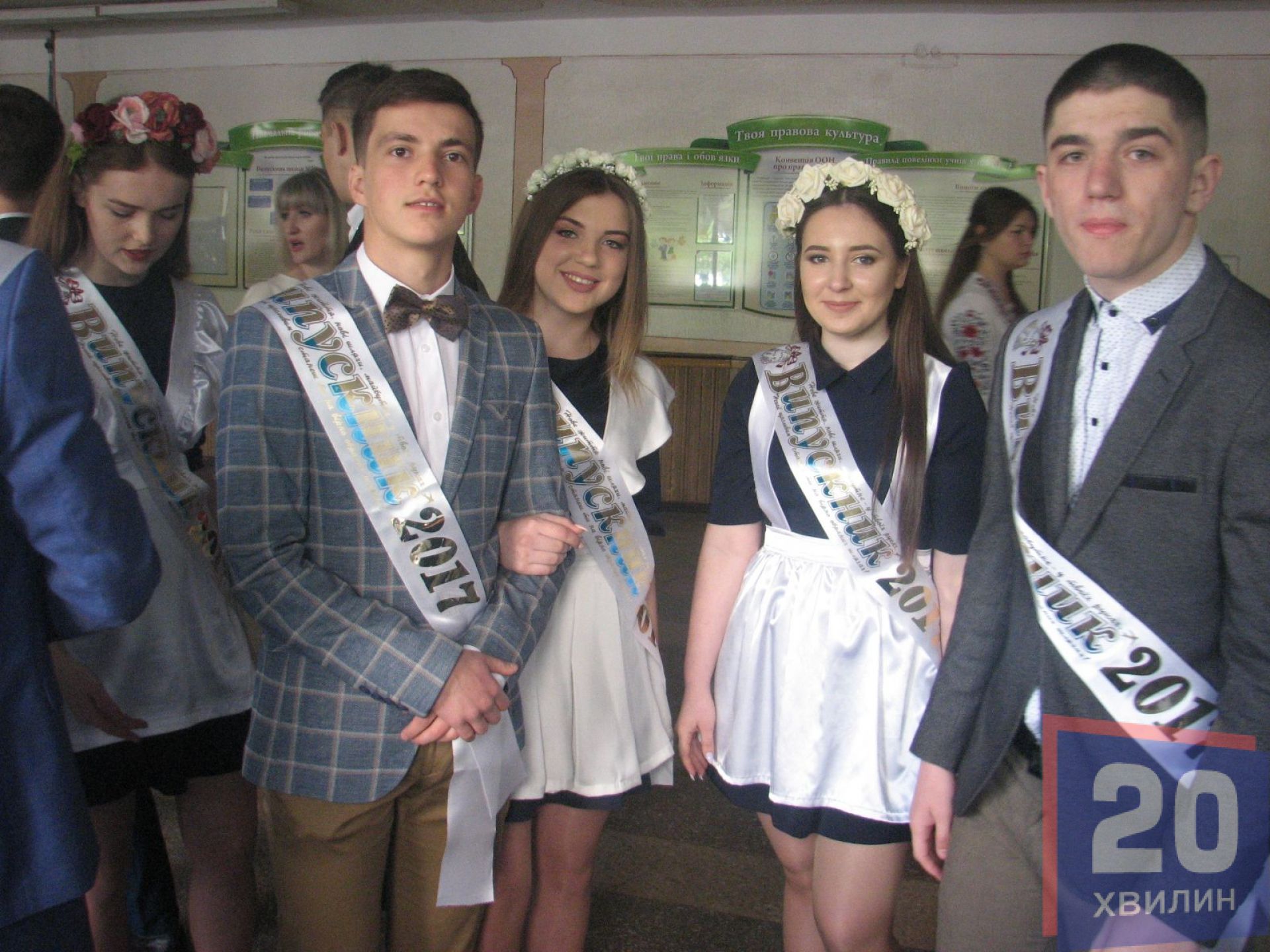 Останній дзвоник у школі № 5 розпочався о 9.00. На урочисту лінійку зібралися вчителі, батьки та школярі з квітами. Випускникам, які які виходили колоною на шкільне подвір’я діти посипали дорогу пелюстками троянд.