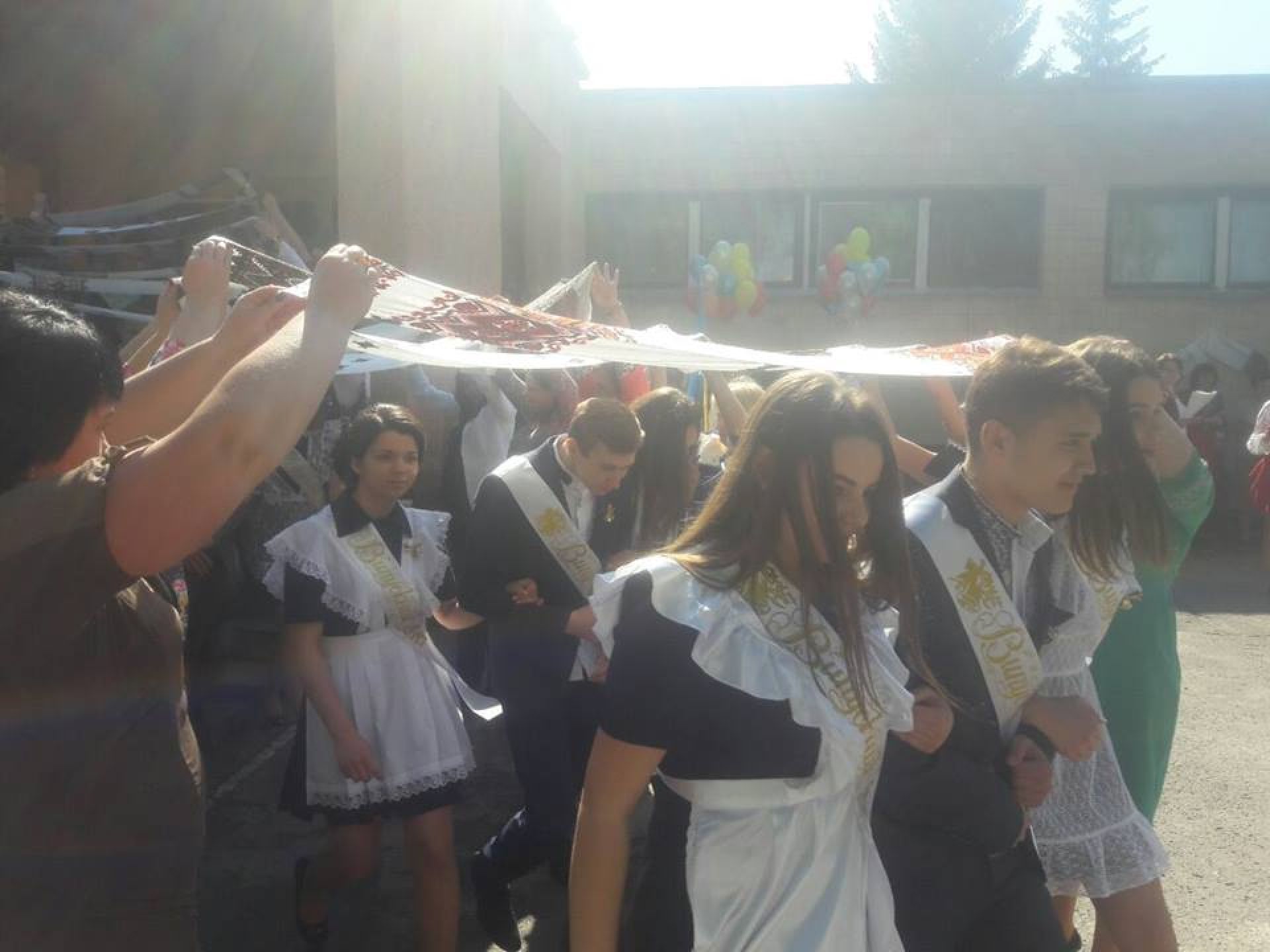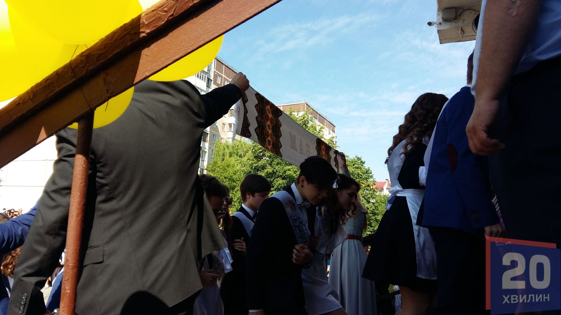 На останній дзвоник учні школи №19 прийшли у вишиванках. Випускники у шкільних формах та білих фартушках. Дітей благословив священик. Урочистості розпочалися о 10.00 і ще тривають.