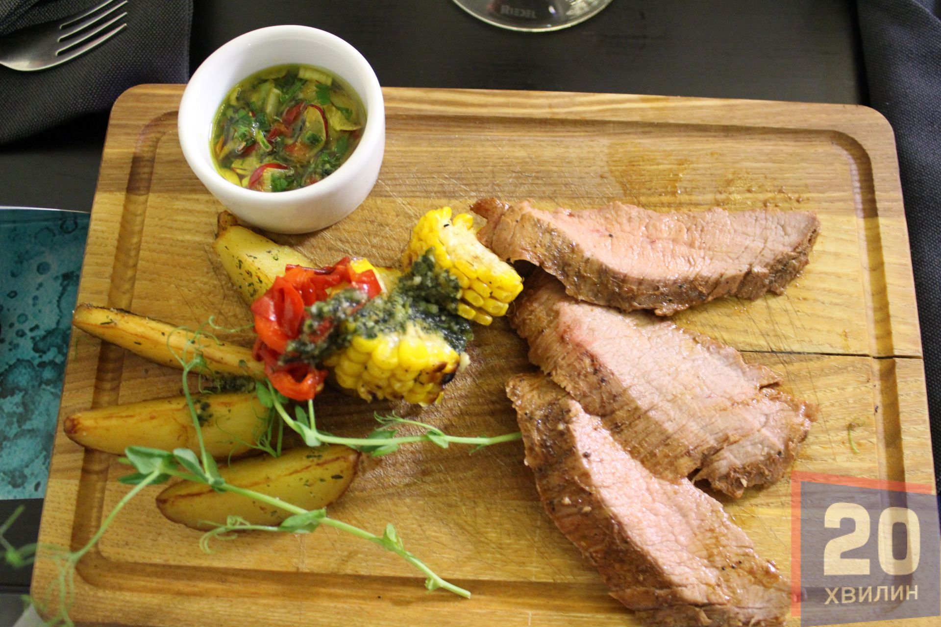 Четвертою стравою було м’ясо з картоплею та овочами гриль. Шеф-кухар обрав фланк стейк, який сам по собі є досить жорстким. Papa Loci м’ясо приготував на грилю зі спеціями.