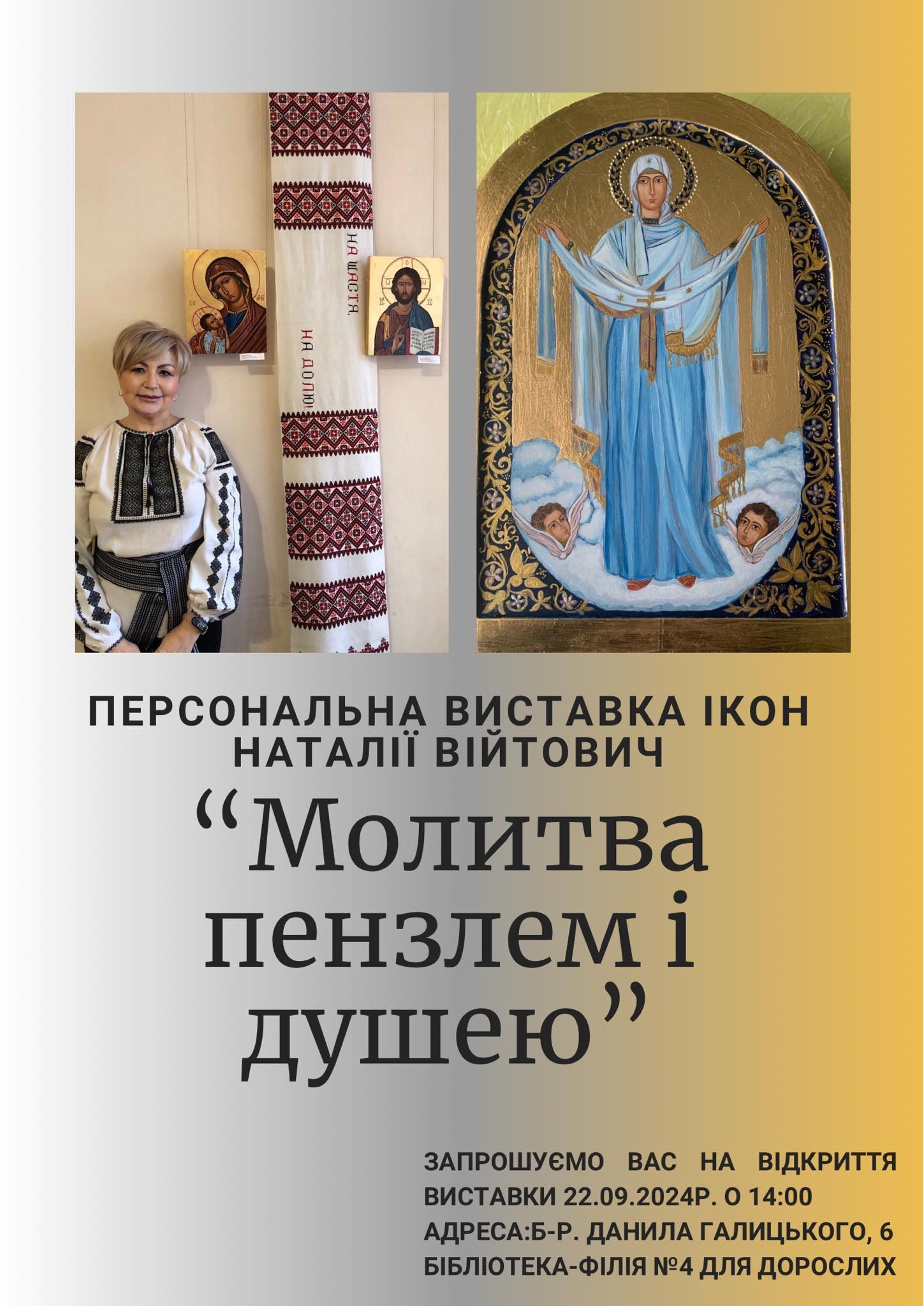 Відкриття персональної виставки ікон «Молитва пензлем і душею» Наталії Війтович відбудеться у неділю, 22 вересня.