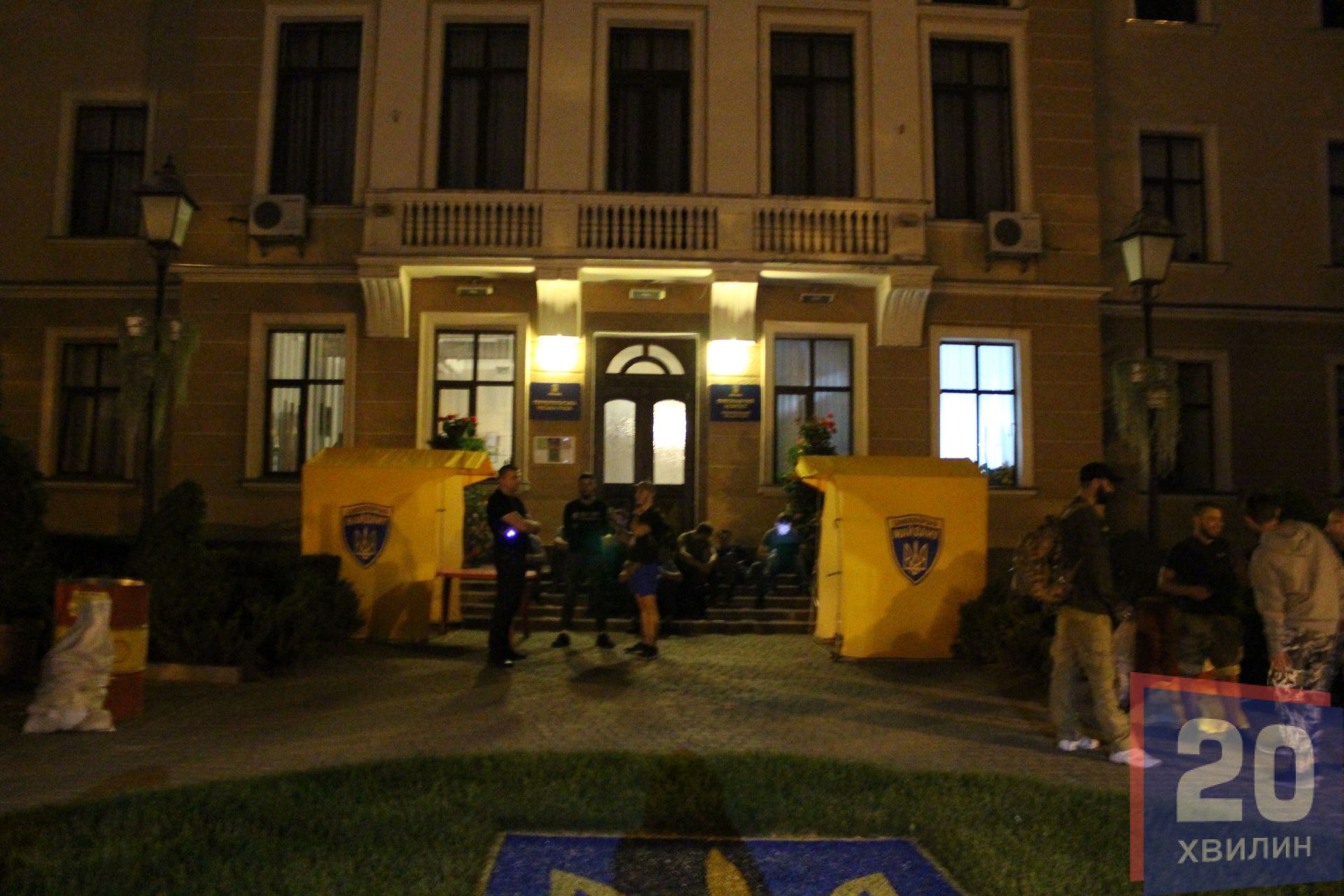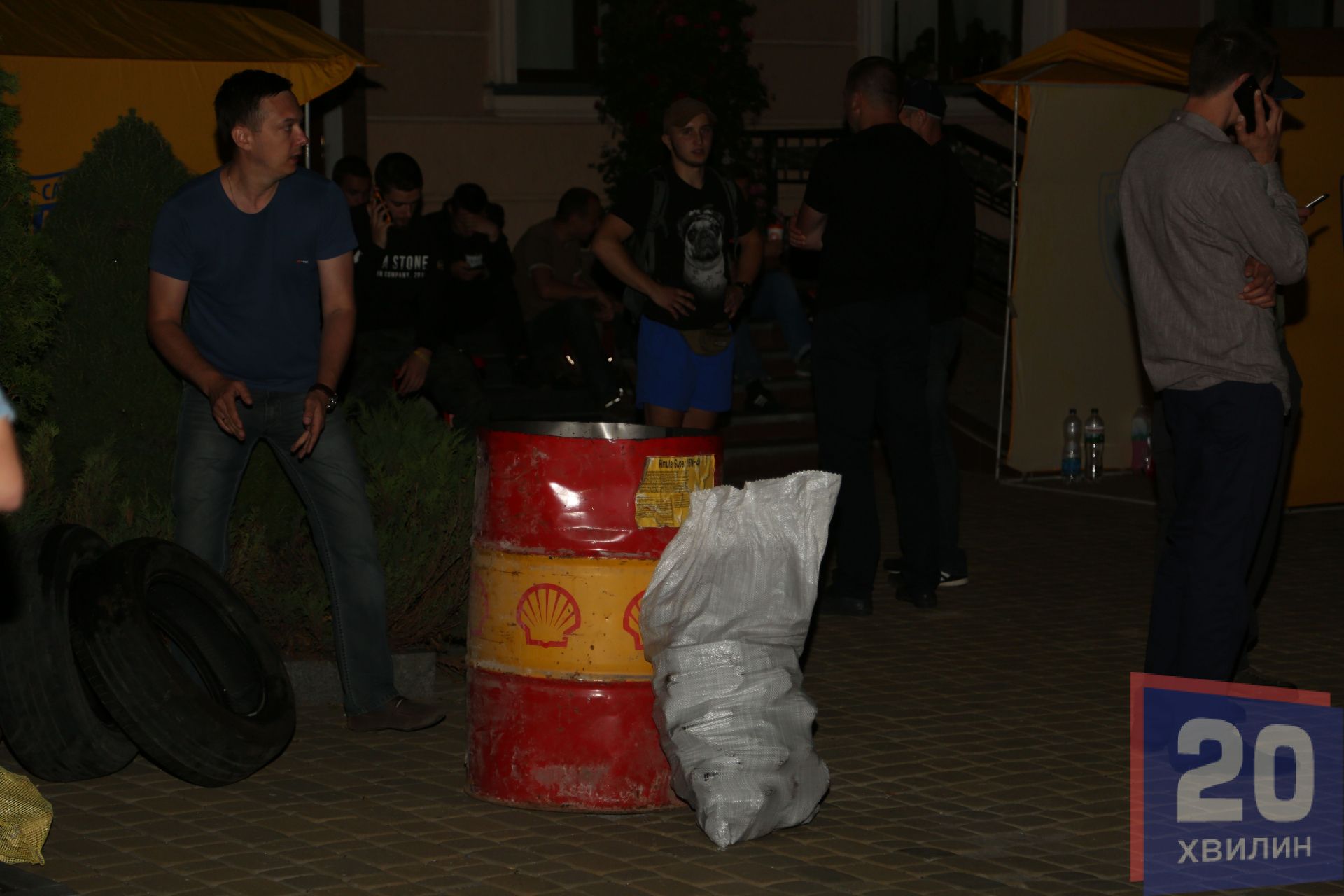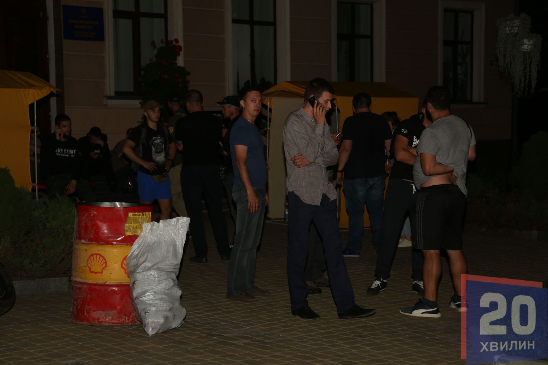 Тернопільські активісти зібралися під стінами міськради увечері 27 липня напередодні сесії. Вона має розпочатися 28 липня о 9.00. Тут можна побачити представників «Автомайдану, «Самооборони».