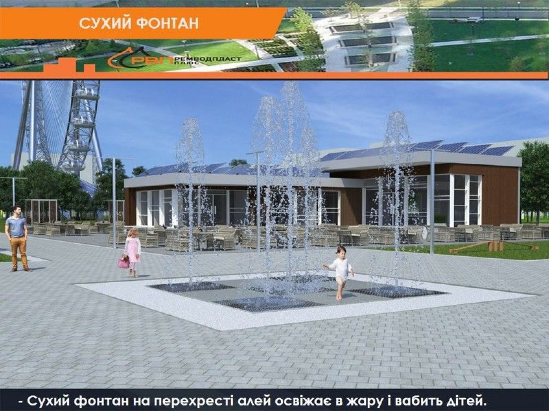 Згідно із запропонованим проектом, у парку мають бути алеї, музейно-розважальний комплекс, сухий фонтан, дитячий майданчик, ігрове середовище, шаховий майданчик, місця відпочинку із зручними меблями, буккросінг, кав'ярня, місце для воркауту, автостоянка, арт-об'єкт скульптури.