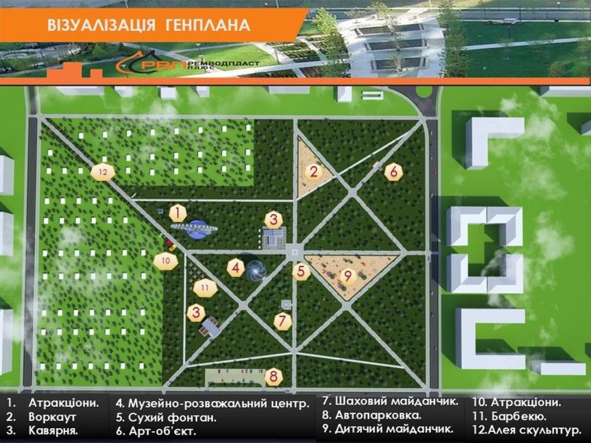- Тим часом триває громадське обговорення ескізного проекту парку площею 10,5 га. Свої пропозиції можна подати до 4 квітня.