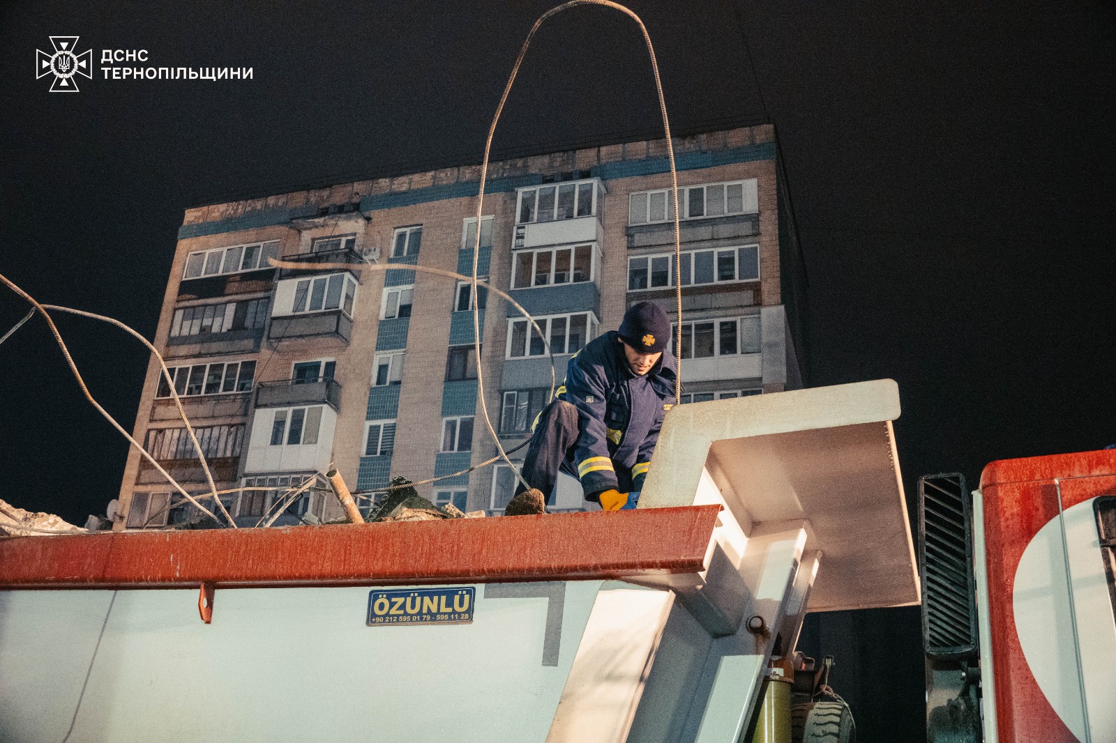 — Тіло ще однієї жінки рятувальники ДСНС виявили під завалами зруйнованого будинку, — повідомили на Фейсбук-сторінці ДСНС України. — Станом на ранок кількість загиблих у Тернополі зросла до 32 осіб, серед них 6 дітей. Постраждали 94 людини, з них 18 дітей. Безвісти зниклими вважаються 7 осіб.