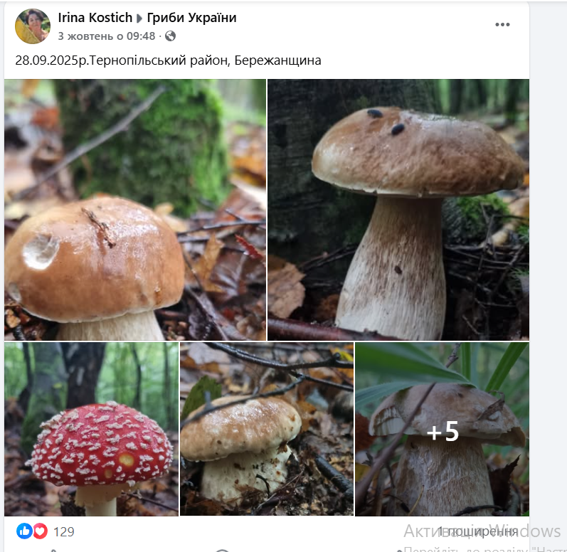 У спільноті Гриби Тернопільщини місцеві діляться світлинами з місць на Тернопільщині.