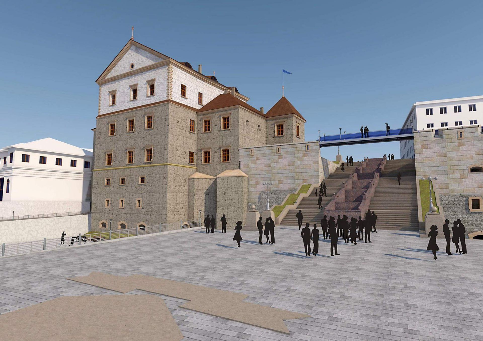 Архітектор підготував візуалізацію того, як міг би виглядати Тернопільський Замок та прилегла територія із заекспонованими залишками оборонних стін після їх відкриття.