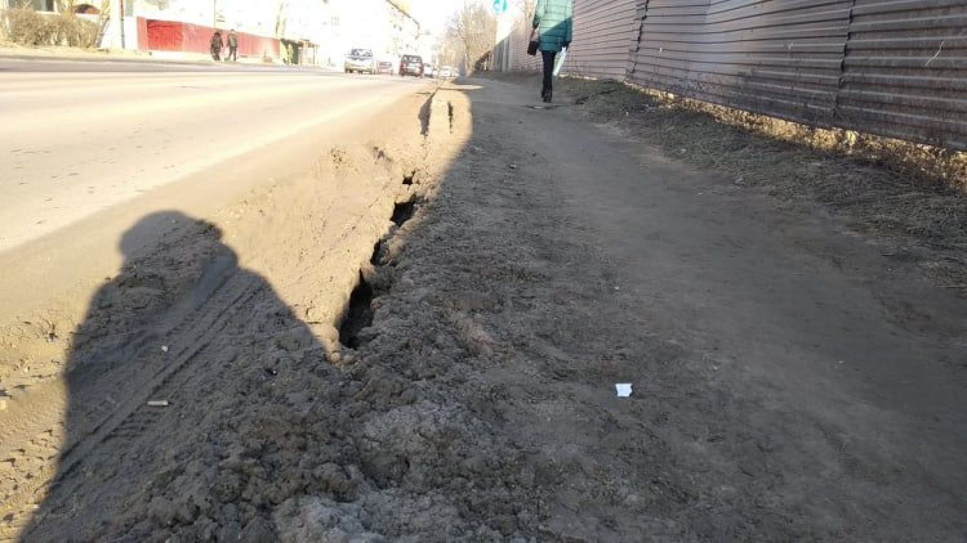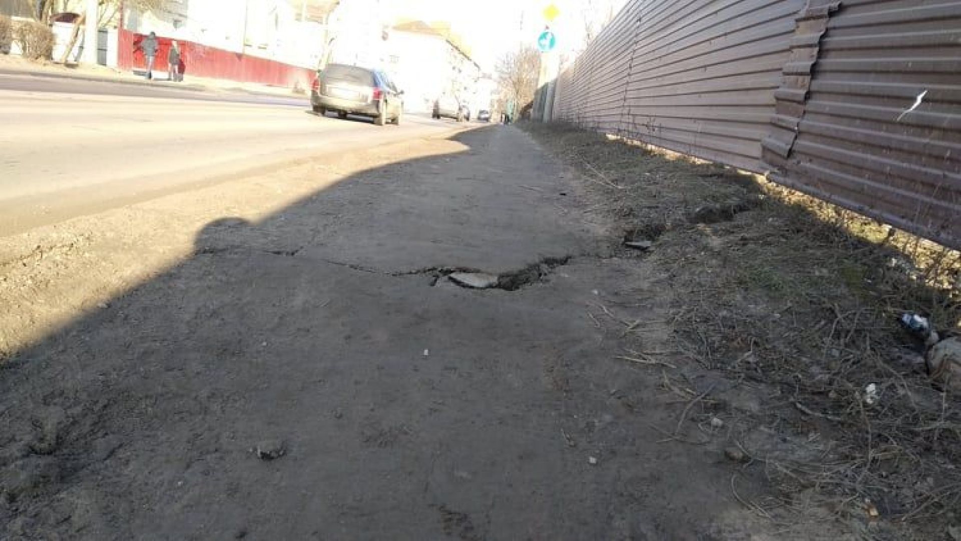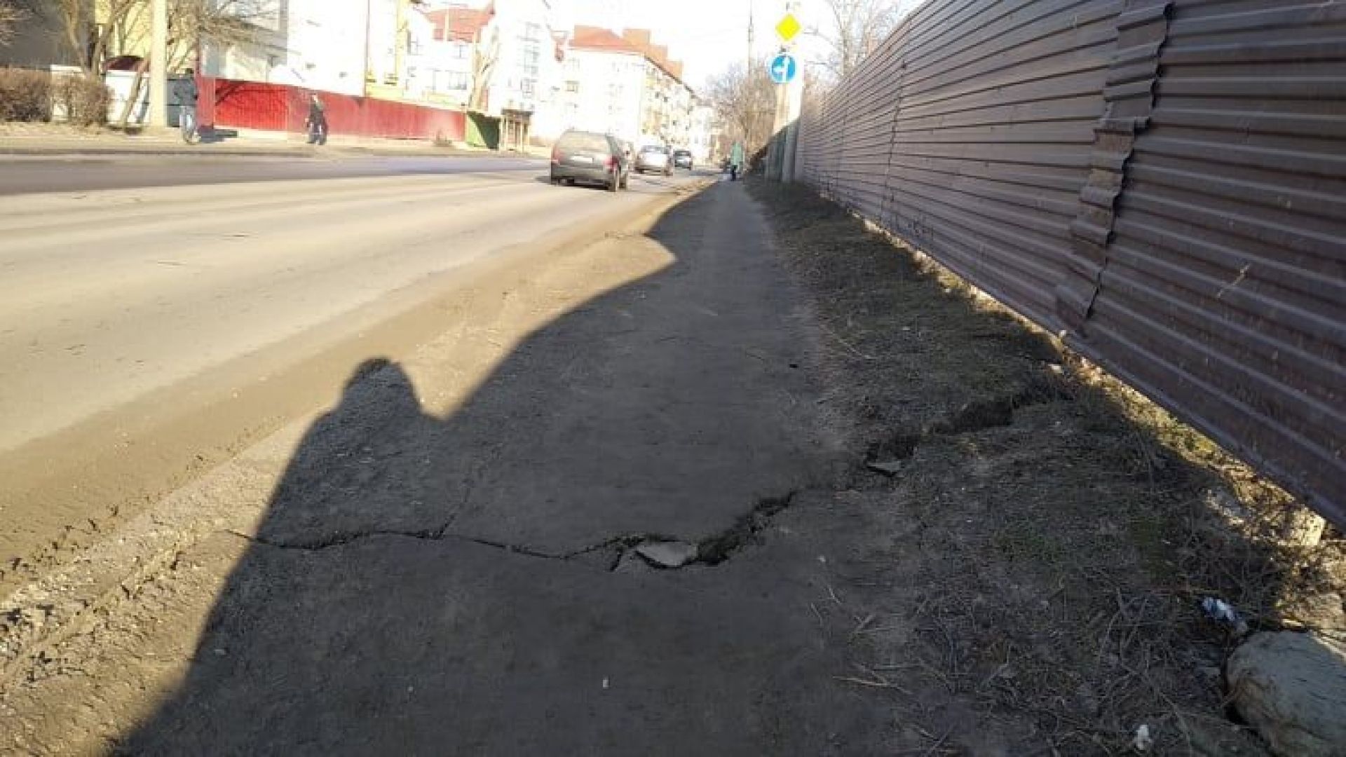 Якщо не укріплять стіною, то не тільки тротуар, але і дорога "сповзе" на ту забудову що за парканом!!!