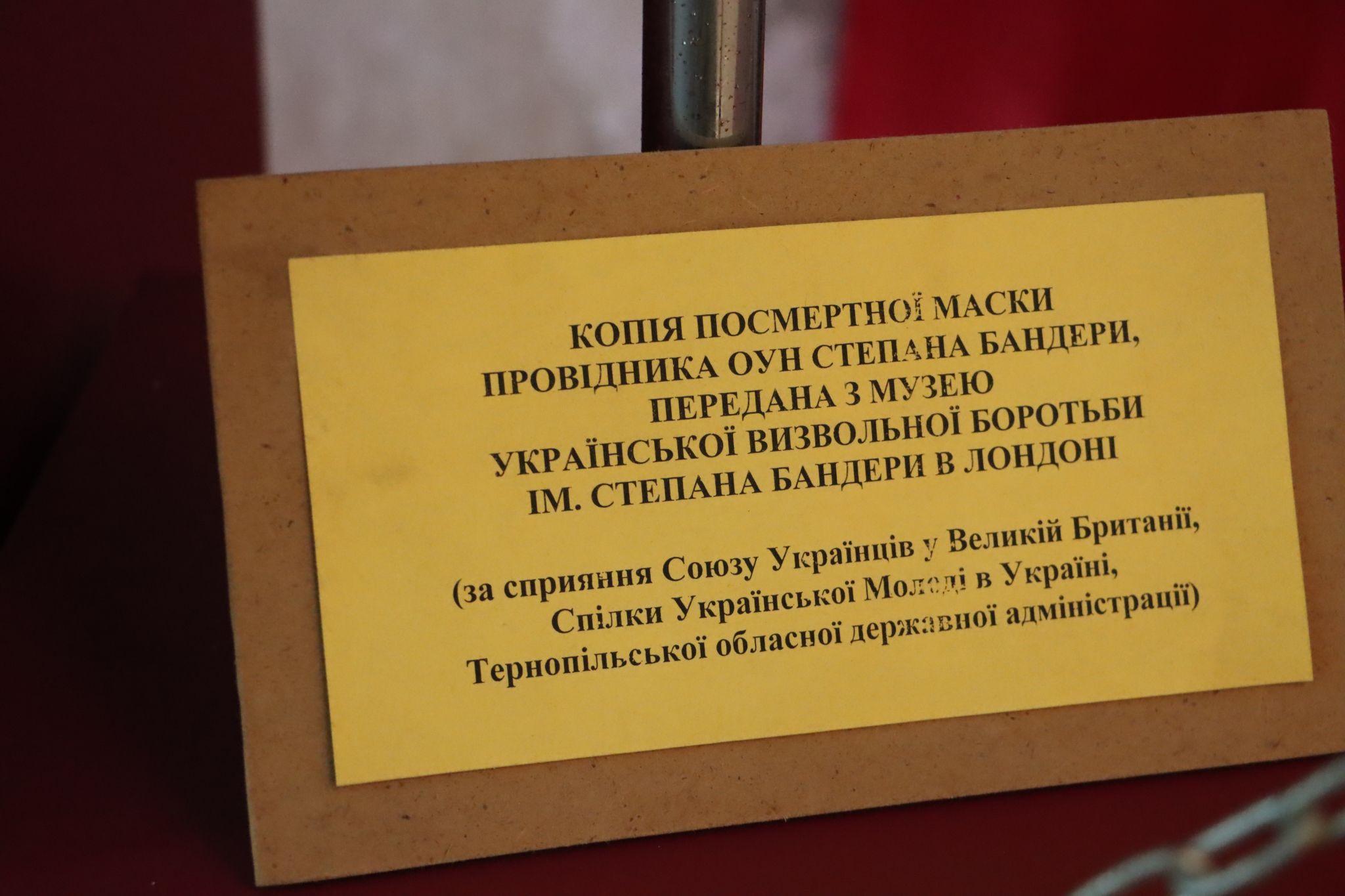 Унікальний експонат, який у ній зберігається – це копія посмертної маски Бандери. Її 15 років тому передали у Тернопіль з лондонського музею за сприяння Союзу Українців у Великій Британії, як розповів старший науковий співробітник музею політичних в’язнів Ігор Олещук.