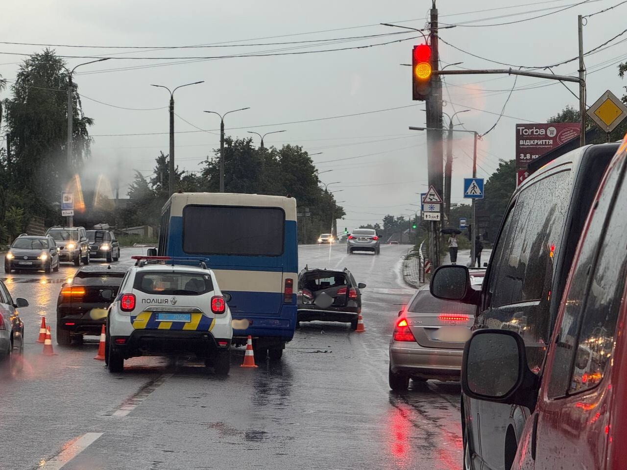— Зіштовхнулися Jaguar, Volkswagen та маршрутка. На місці працюють патрульні, з’ясовують обставини аварії. Рух частково ускладнений, — повідомила старша інспекторка управління патрульної поліції в області Віталія Щупляк.