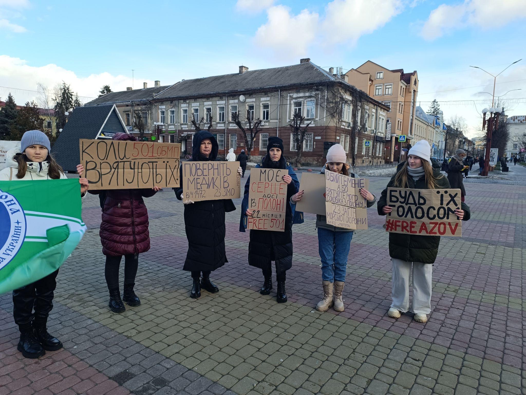 У Тернополі на Театрльному майдані зібрались кілька десятків людей з прапорами та плакатами. Вони просять якомога швидше повернути з полону українських захисників.