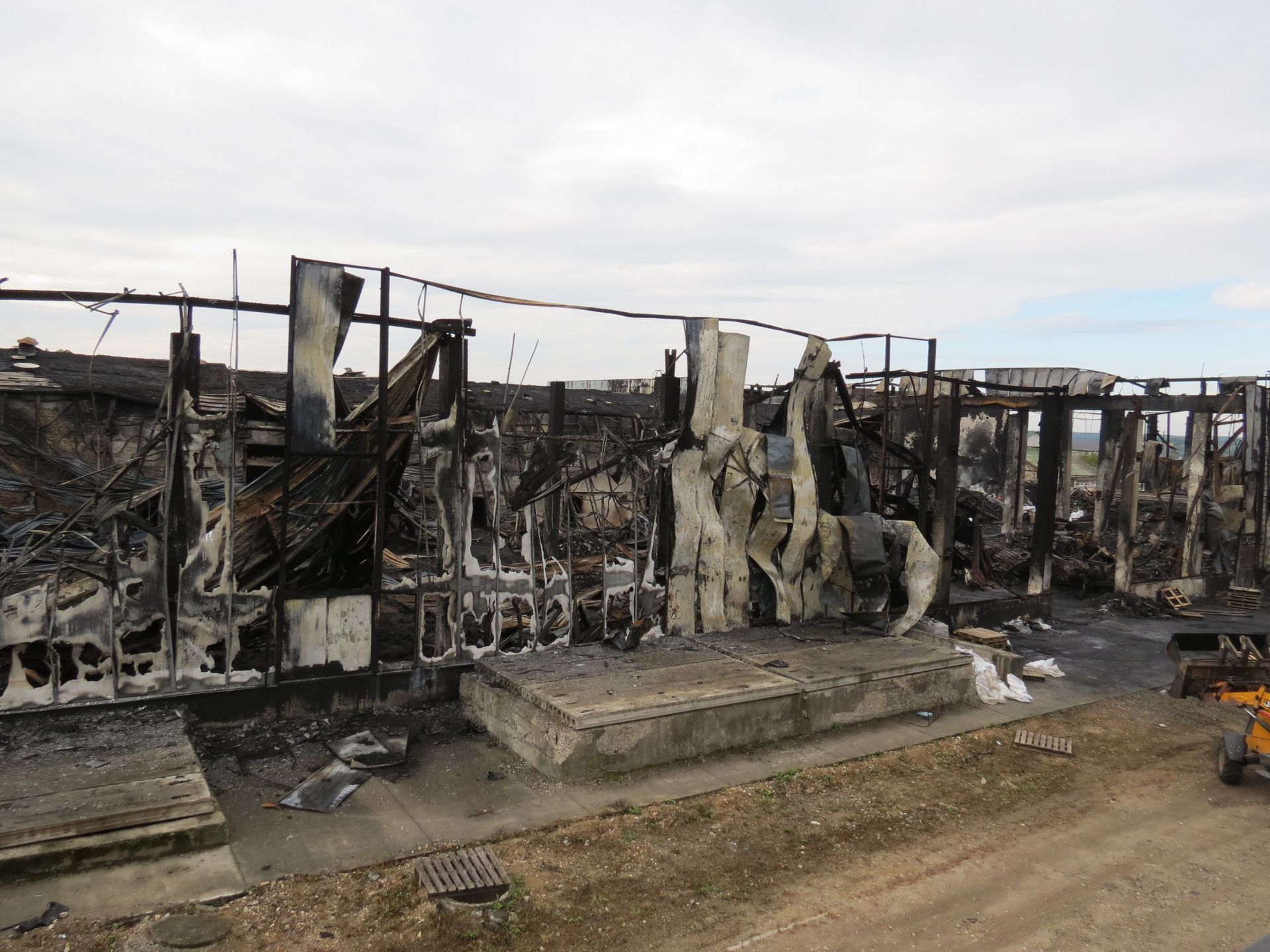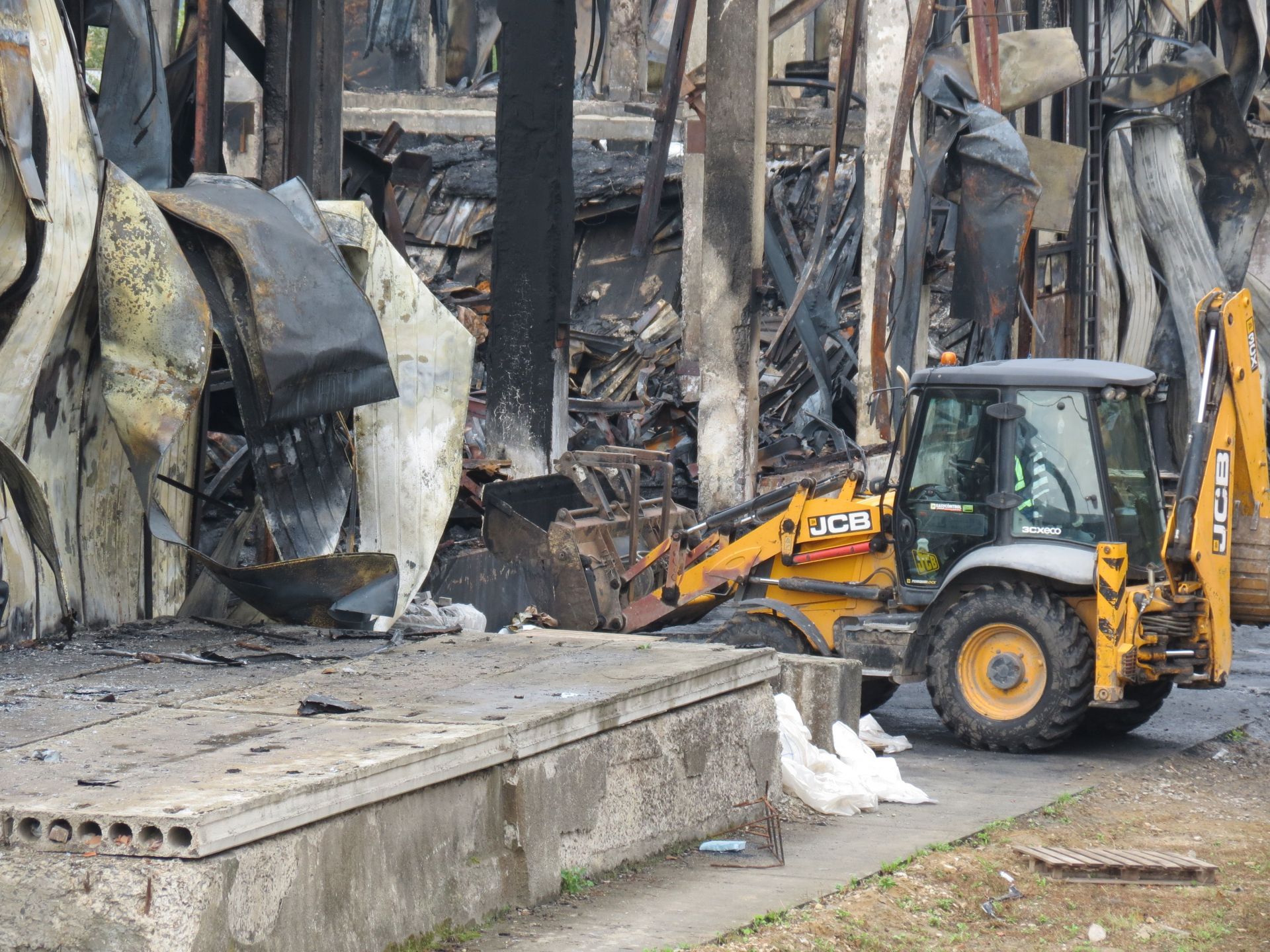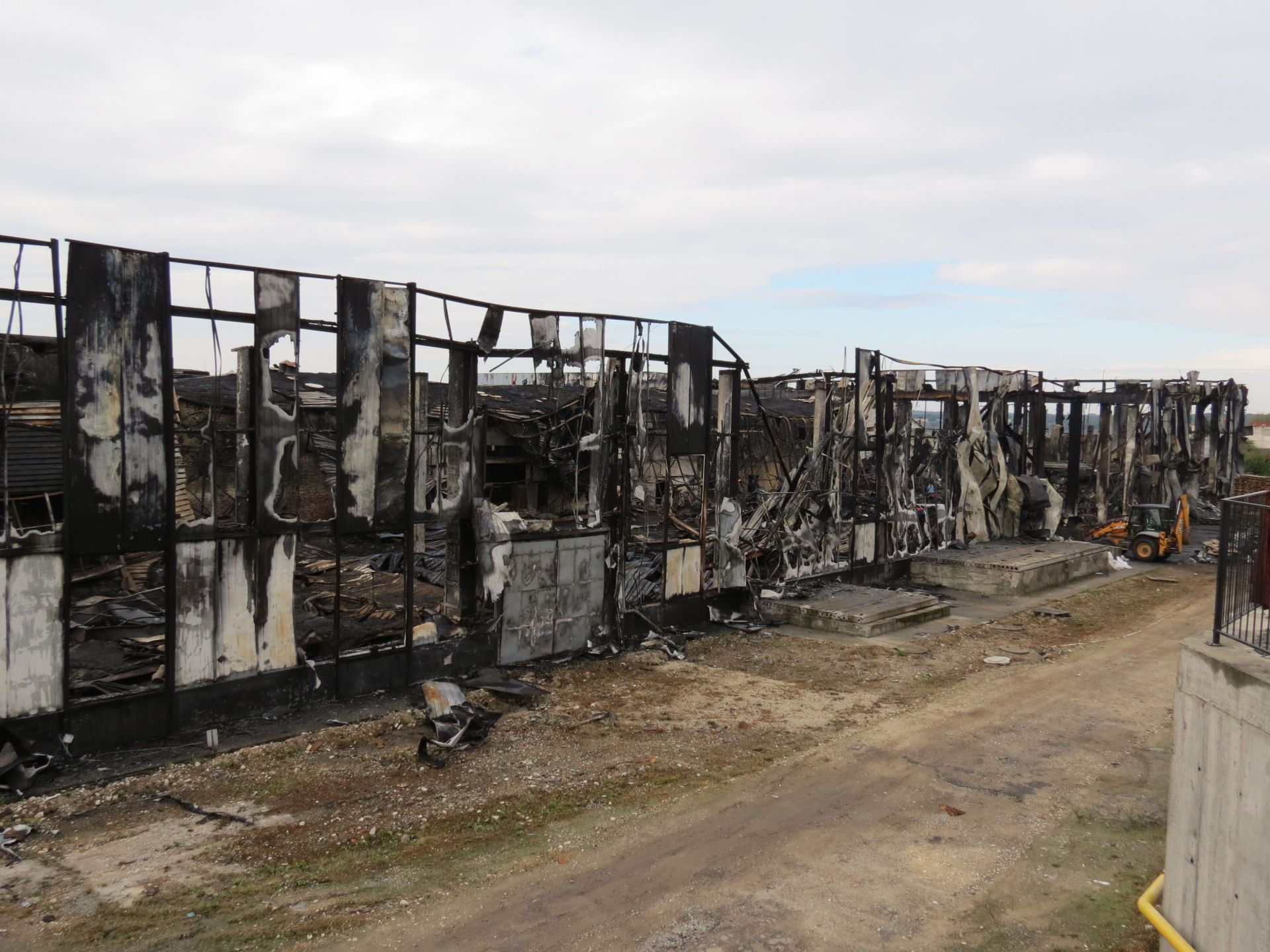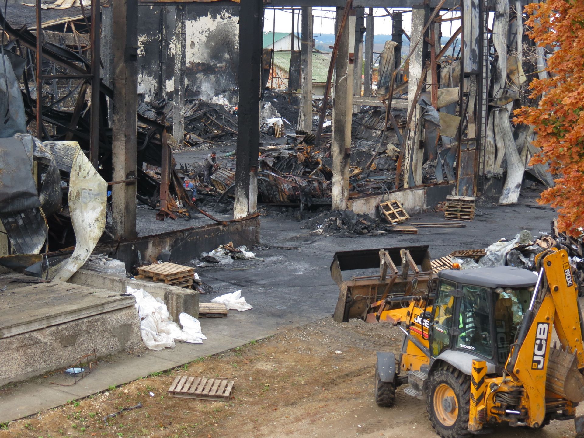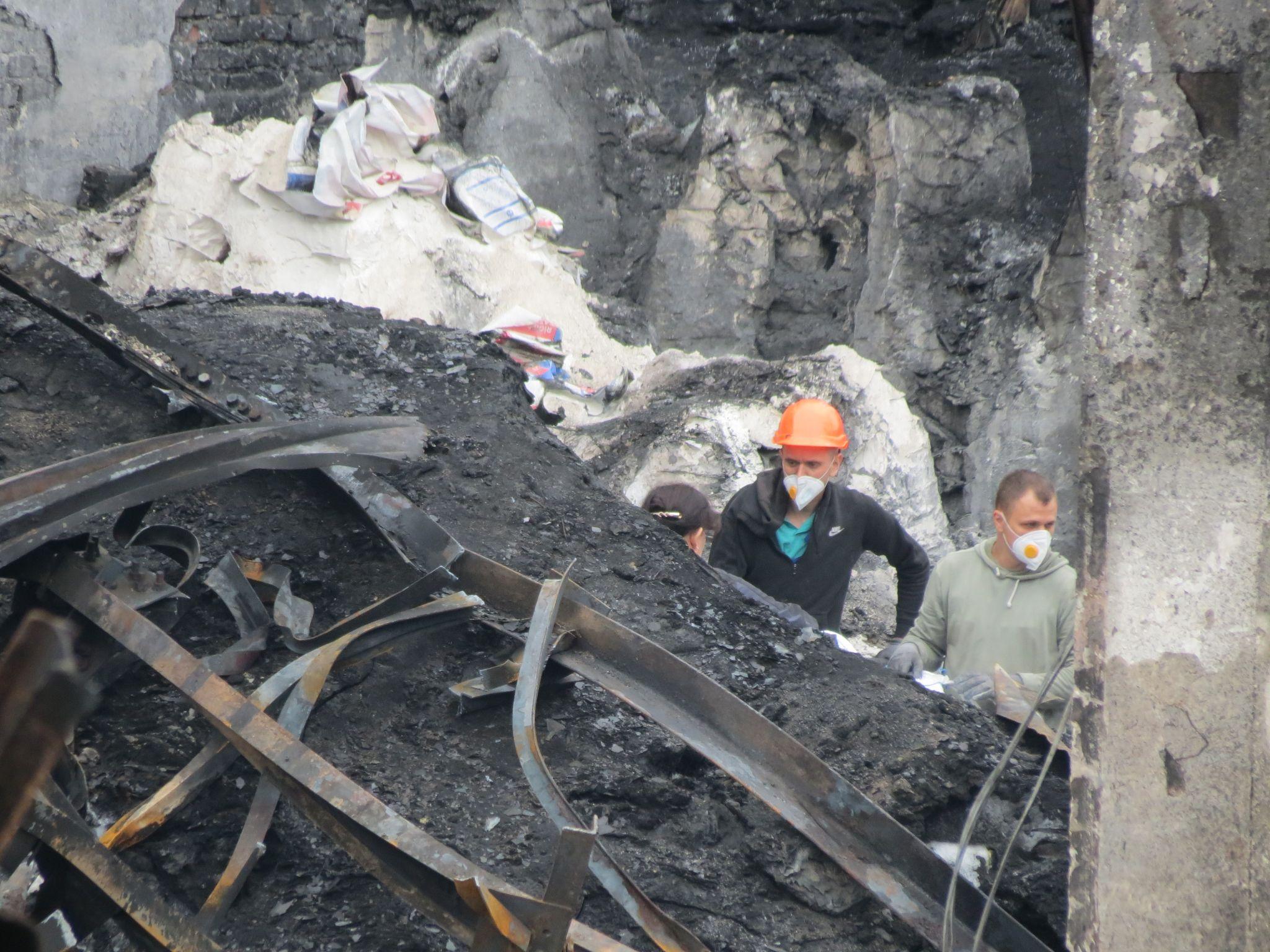 Журналісти «20 хвилин» побували біля підприємства після нічної пожежі зранку 20 вересня. Тут розбирають конструкції на згарищі. Працює спецтехніка, ми побачили багато робітників на території згорілого приміщення та на даху підприємства.