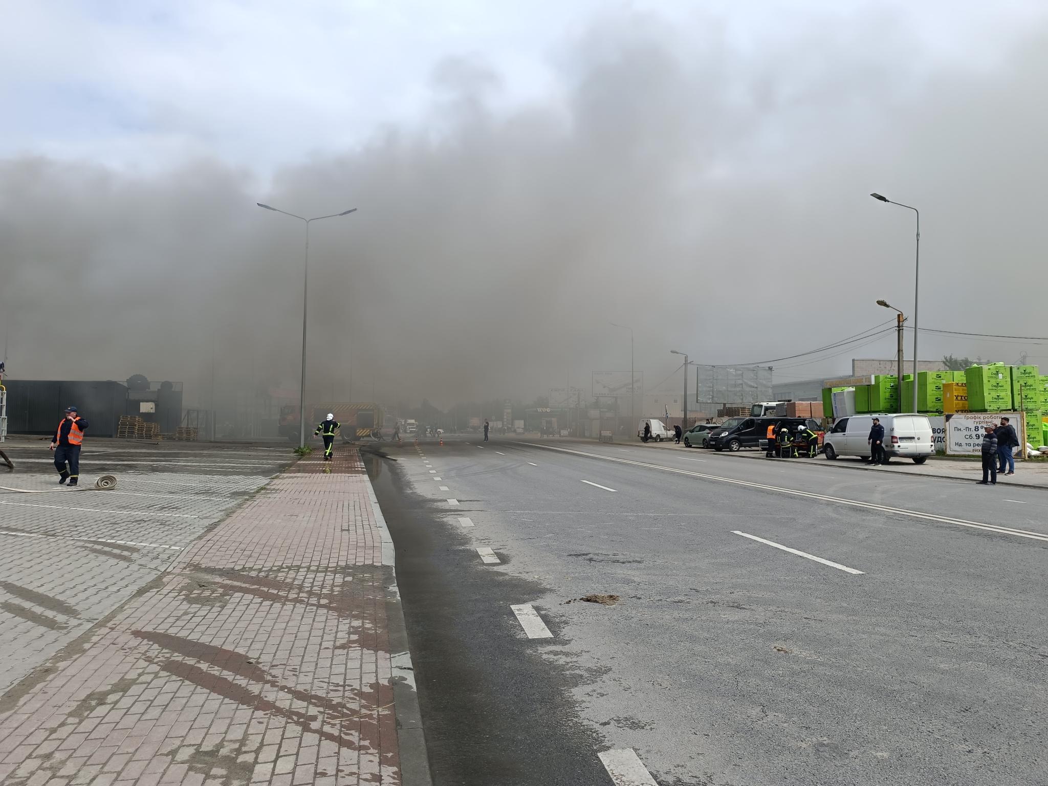 23 травня на вулиці Об'їзній виникла масштабна пожежа на складі. Видно стовпи чорного диму.