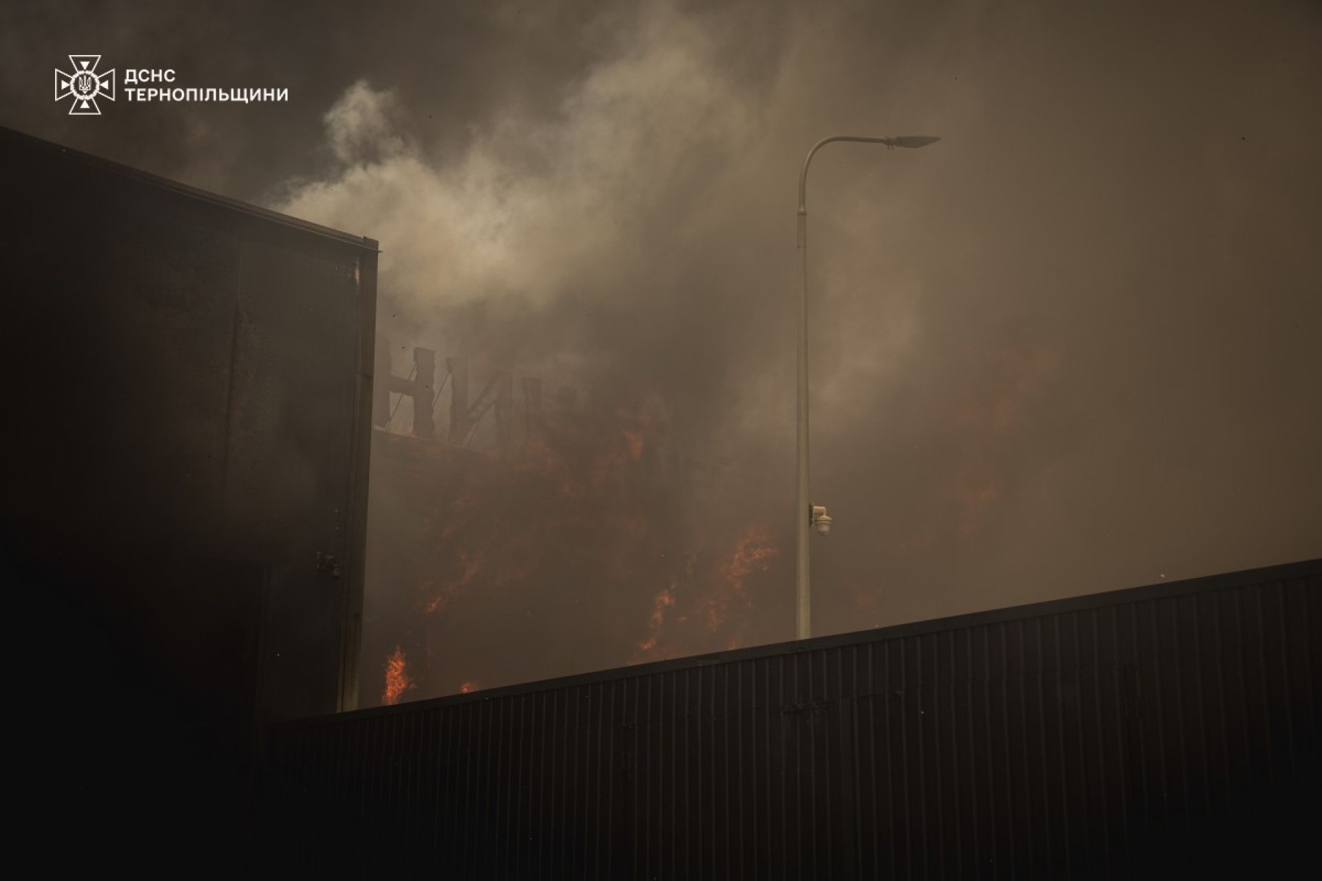 О 18.42 в ДСНС Тернопільщини повідомили, що площа займання сягнула 800 м². До гасіння залучено 14 одиниць техніки та 53 рятувальники.