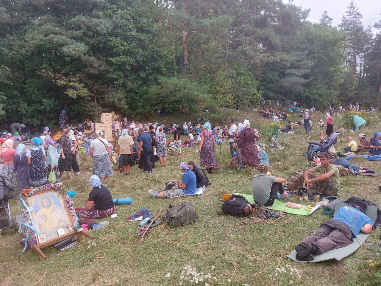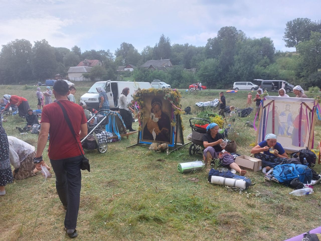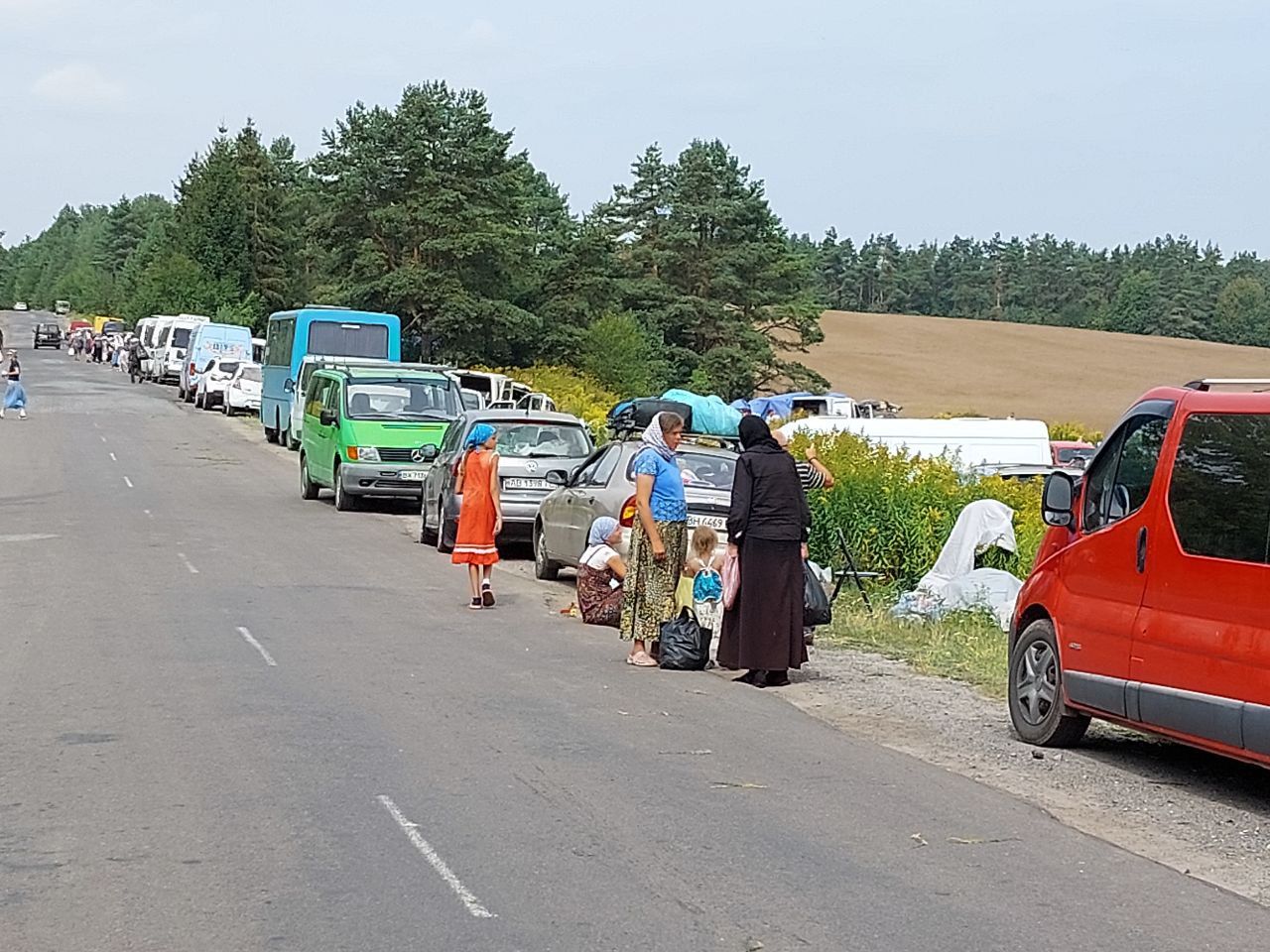 Що зараз відбувається? Наша журналістка зранку перебувала неподалік села Плоске де частина прочан зупинялися на перепочинок та розбили табір.