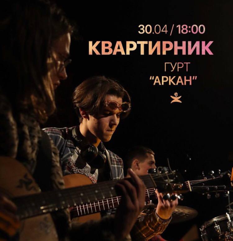 Молодий і драйвовий гурт «Аркан» проведе весняний квартирник. У репертуарі хлопців як кавери на відомих виконавців, так і авторські треки. «Пропагандисти української мови, культури та музики. Вважаємо це нашим покликанням – творчістю дарувати людям тепло, радість, розуміння того хто ми і ким маєм бути. І пам'ятаємо, що все завдяки ЗСУ, тож заради них і працюємо», – кажуть музиканти.