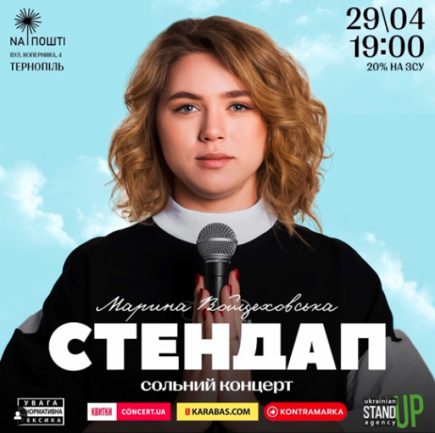 Містян запрошують відвідати сольний стендап молодої комікині Марини Войцеховської. Вона