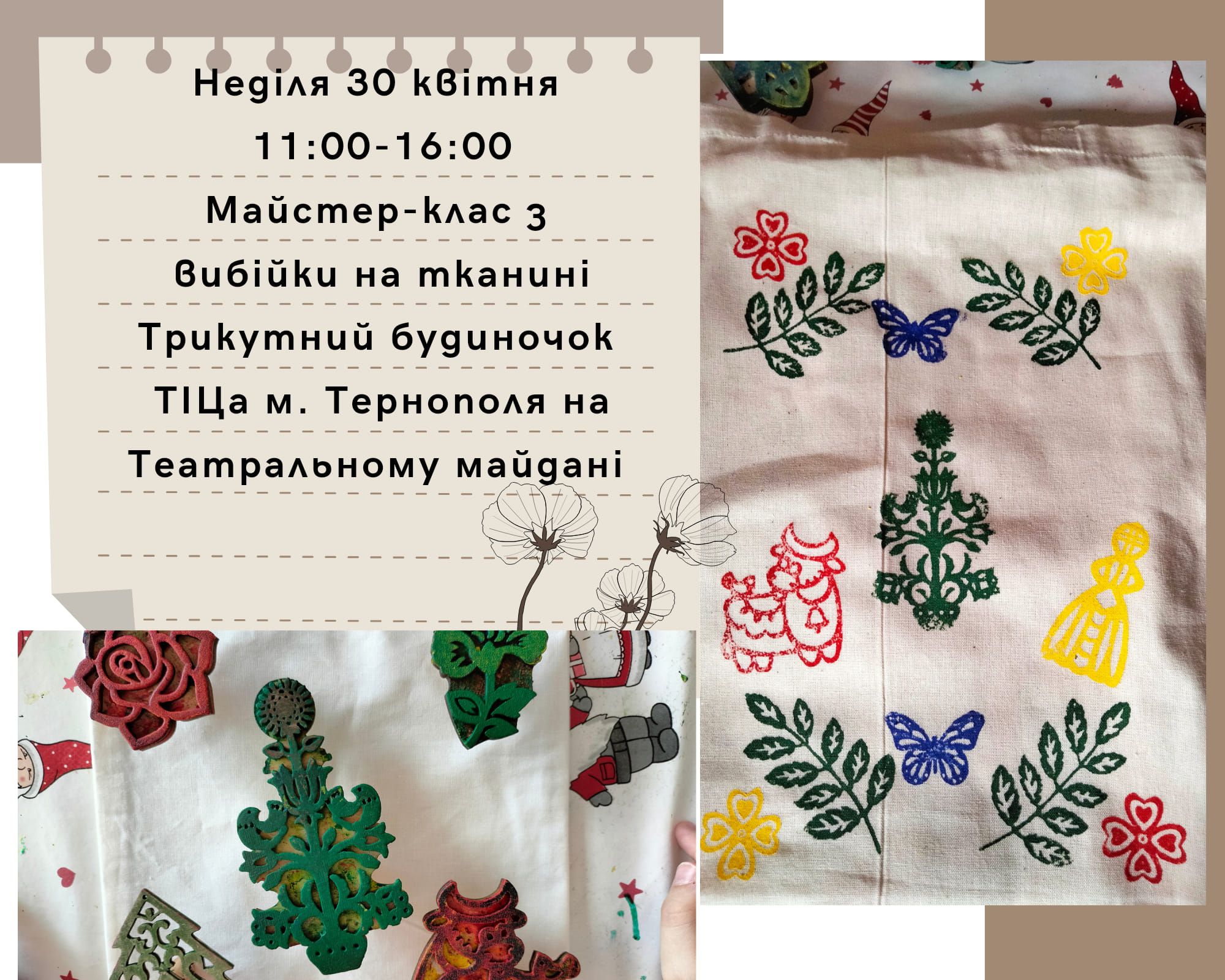 Всіх охочих запрошують на майстер-клас, аби дізнатися про давнє мистецтво вибійки та створити свій перший візерунок на тканині. За допомогою спеціальної фарби і дерев'яних форм учасники зможуть прикрасити мішечок чи шопер у найдавнішій техніці. Необхідними матеріалами вас забезпечать!