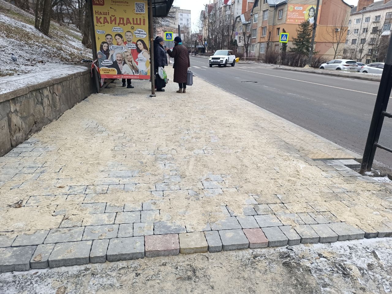 Частину плитки вже поклали. Також знизили перепад висоти бордюру на пішохідному переході до вулиці Перля.