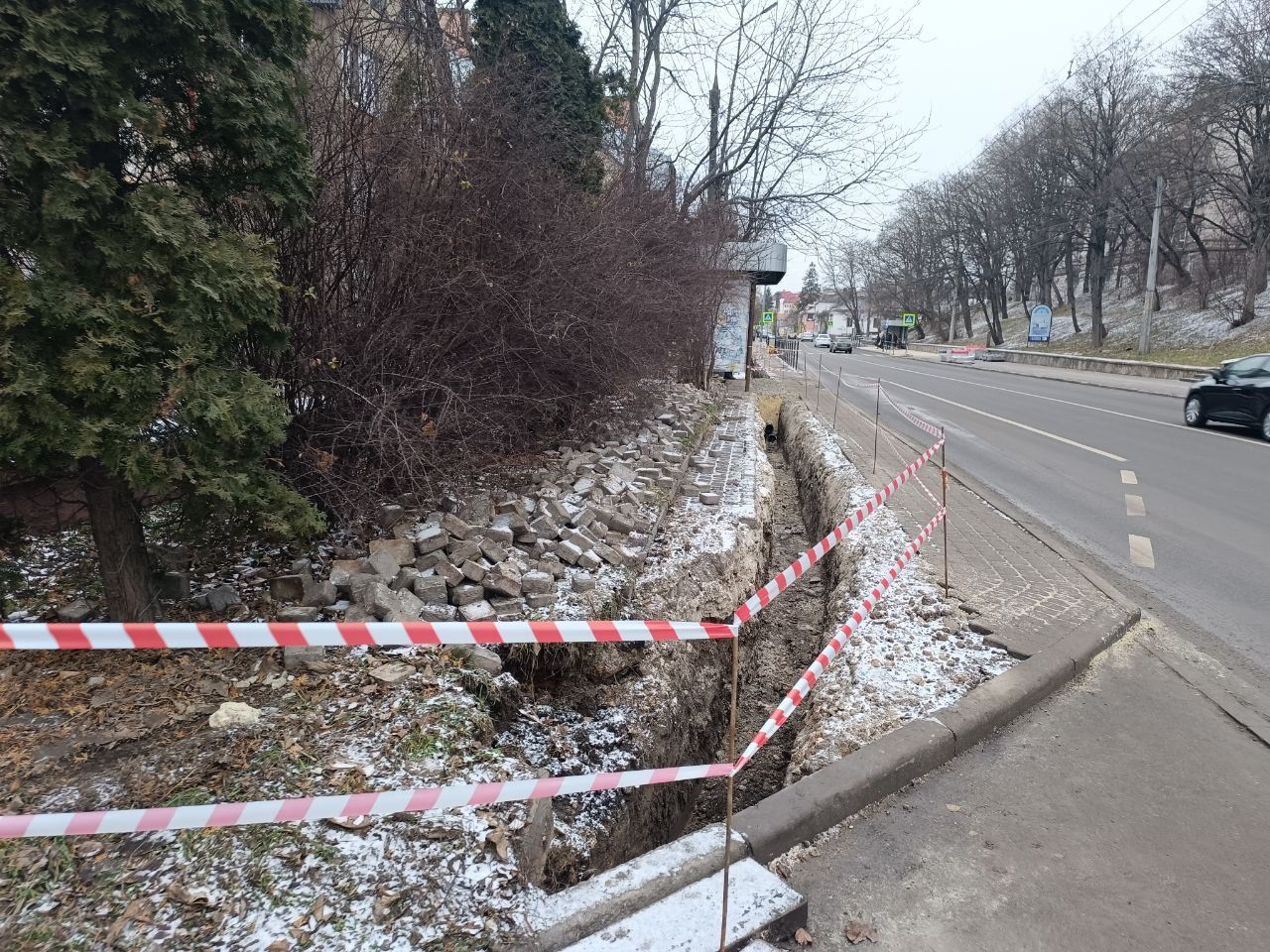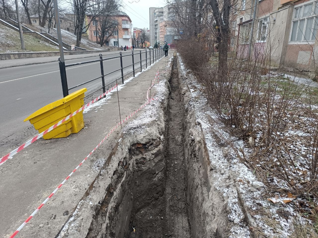 На вулиці Острозького ремонтують тротуар та викопали траншею для нових комунікацій. Що вже зробили?