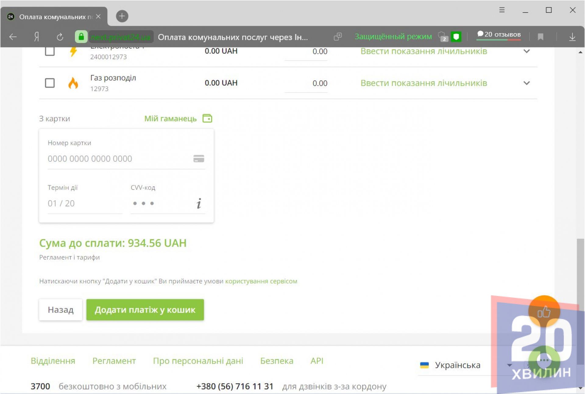 Можна заплатити лише за деякі послуги. Після цього вводимо реквізити картки. Не обов’язково має бути картка ПриватБанку. Далі просто виконуємо підтвердження операції.