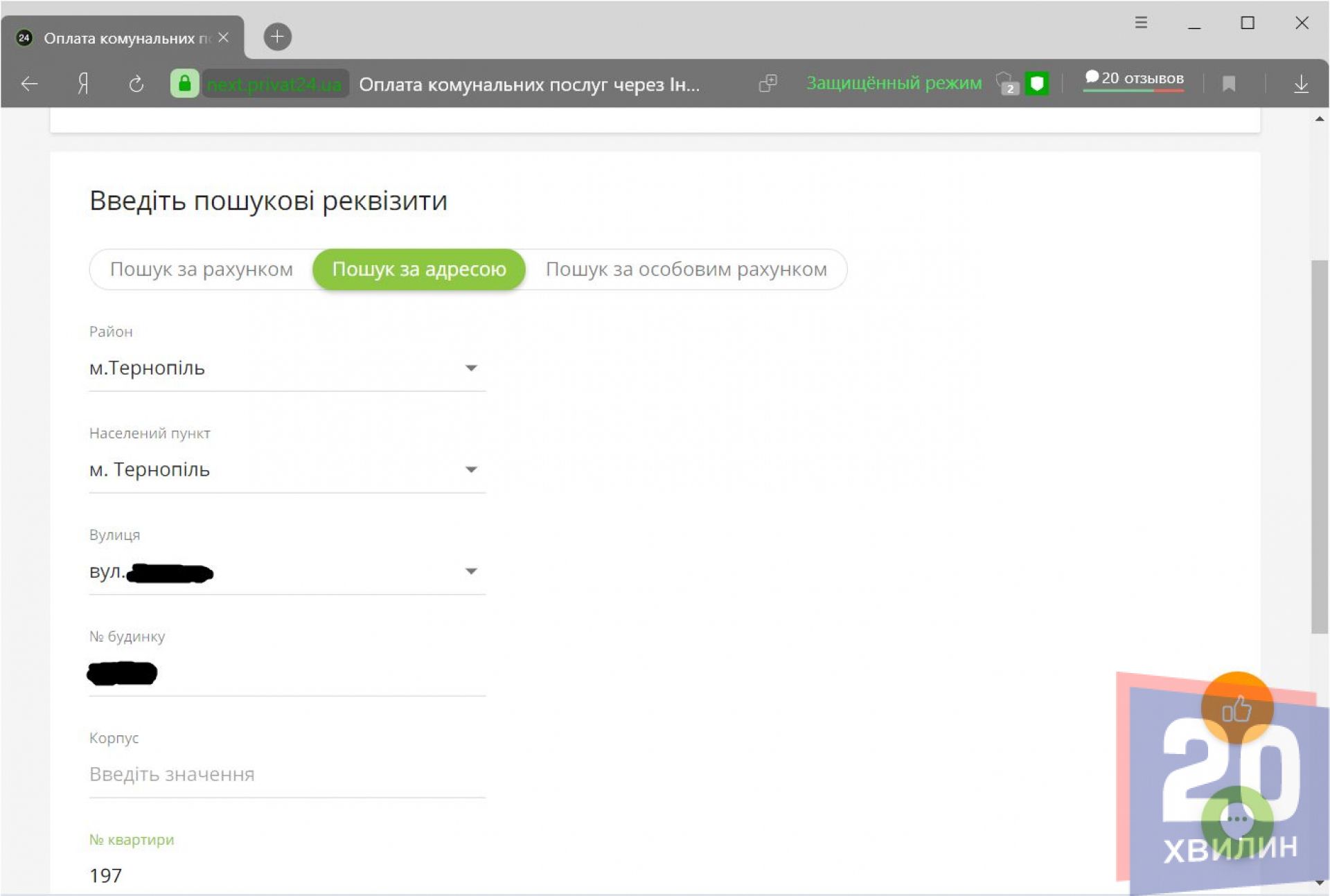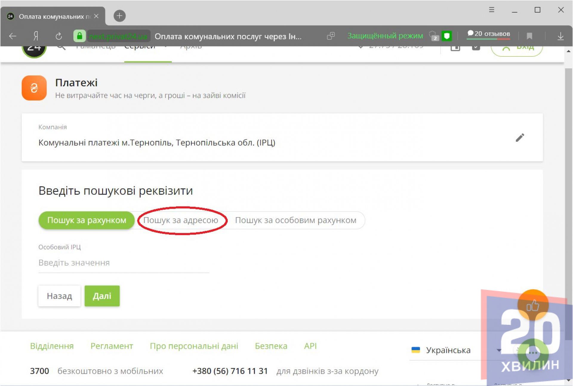 Для того щоб перейти до оплати комунальних послуг – можна скористатися сервісом «Приват24». Зовсім не обов’язково реєструватись або бути користувачем банку. Спершу варто перейти за посиланням https://next.privat24.ua/payments/dashboard Після цього у полі «Компанія потрібно ввести «Комунальні платежі м.Тернопіль, Тернопільська обл. (ІРЦ)». Варто ввести пошукові реквізити. Найпростіше – ввести адресу будинку. Обираємо місто Тернопіль, вводимо назву вулиці, будинку та квартири. Якщо є – варто ввести корпус чи номер блоку будинку. Якщо ж немає – лишаємо поля порожніми. Тиснемо кнопку «Далі».