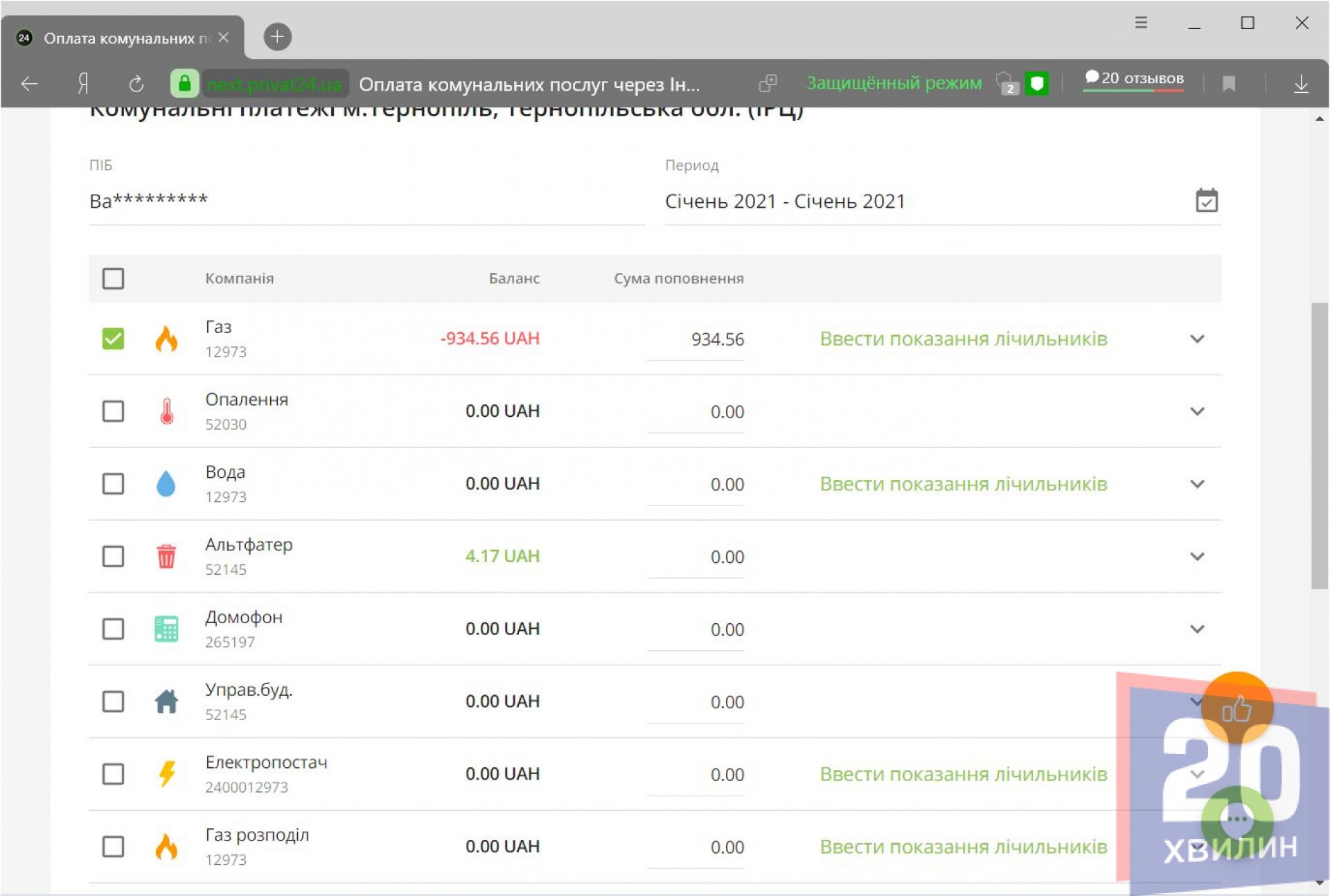 Після цього ми отримуємо інформацію про заборгованість. Можна побачити заборгованість за всі комунальні послуги – газ, опалення, вода, електроенергія, управління будинком, вивіз сміття, ліфт, домофон, тощо.