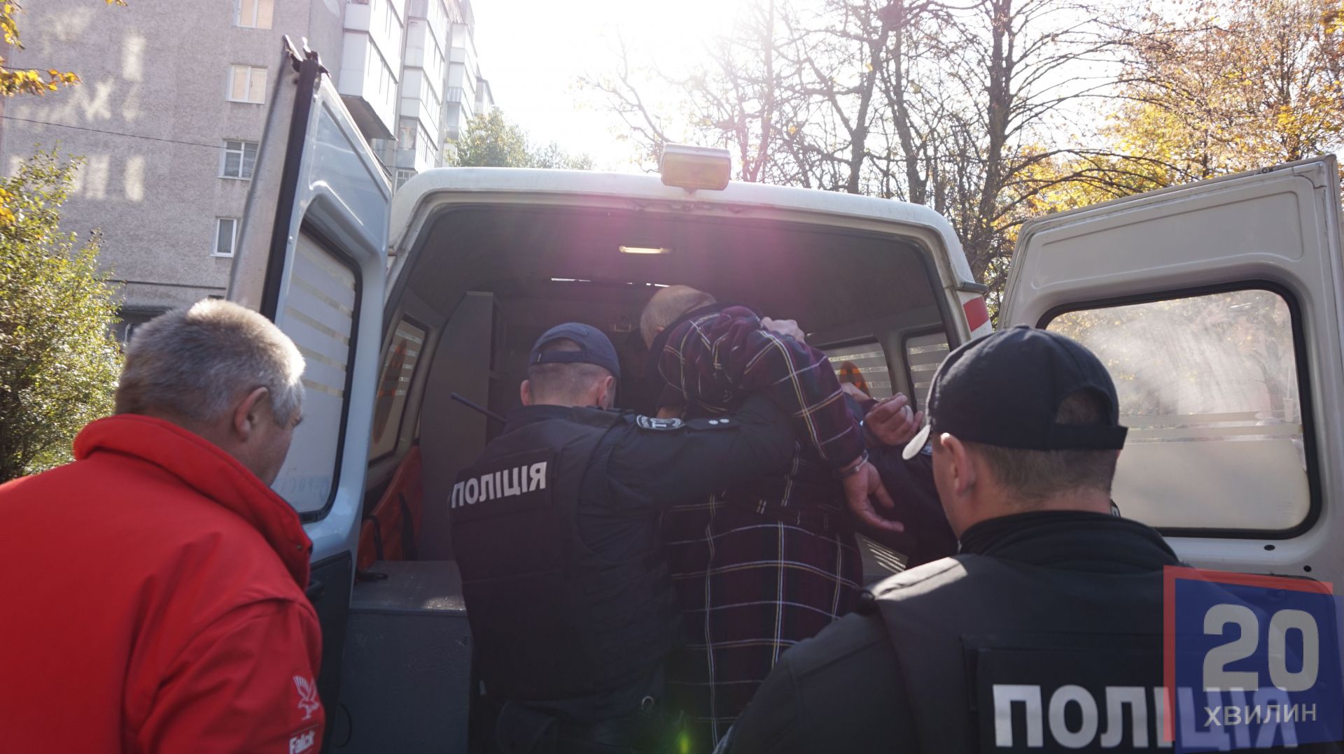 Коли драбина рятувальників наближалась до балкона 6 поверху, агресія чоловіка посилювалась. Він намагався перекинути ногу та скочити униз. Рятувальну техніку зупинили, а поліцейські тим часом пробували заспокоїти чоловіка, запевнивши, що зараз допомога надійде. Зрештою правоохоронці потрапили у помешкання. За кілька хвилин чоловіка у білизні та банному халаті вивели у наручниках та посадили на лавку під під'їздом. Він щось кричав та агресував. До під'їзду під'їхала карета швидкої допомоги. Чоловіка намагались туди спровадити, але він пручався і кричав, що не хоче в лікарню. Врешті його силоміць всадили до автомобіля медиків.