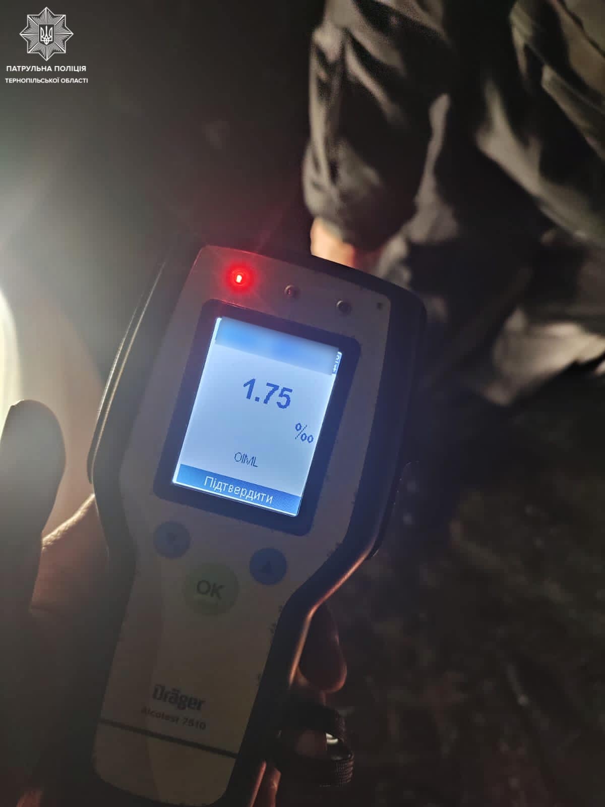 «Спілкуючись з керманичем, поліціянти помітили в нього ознаки алкогольного сп'яніння. Водій погодився пройти огляд на визначення стану сп'яніння за допомогою приладу Драгер на місці. Результат — 1,75 проміле алкоголю в крові чоловіка, що перевищує допустиму норму», — йдеться в повідомленні.
