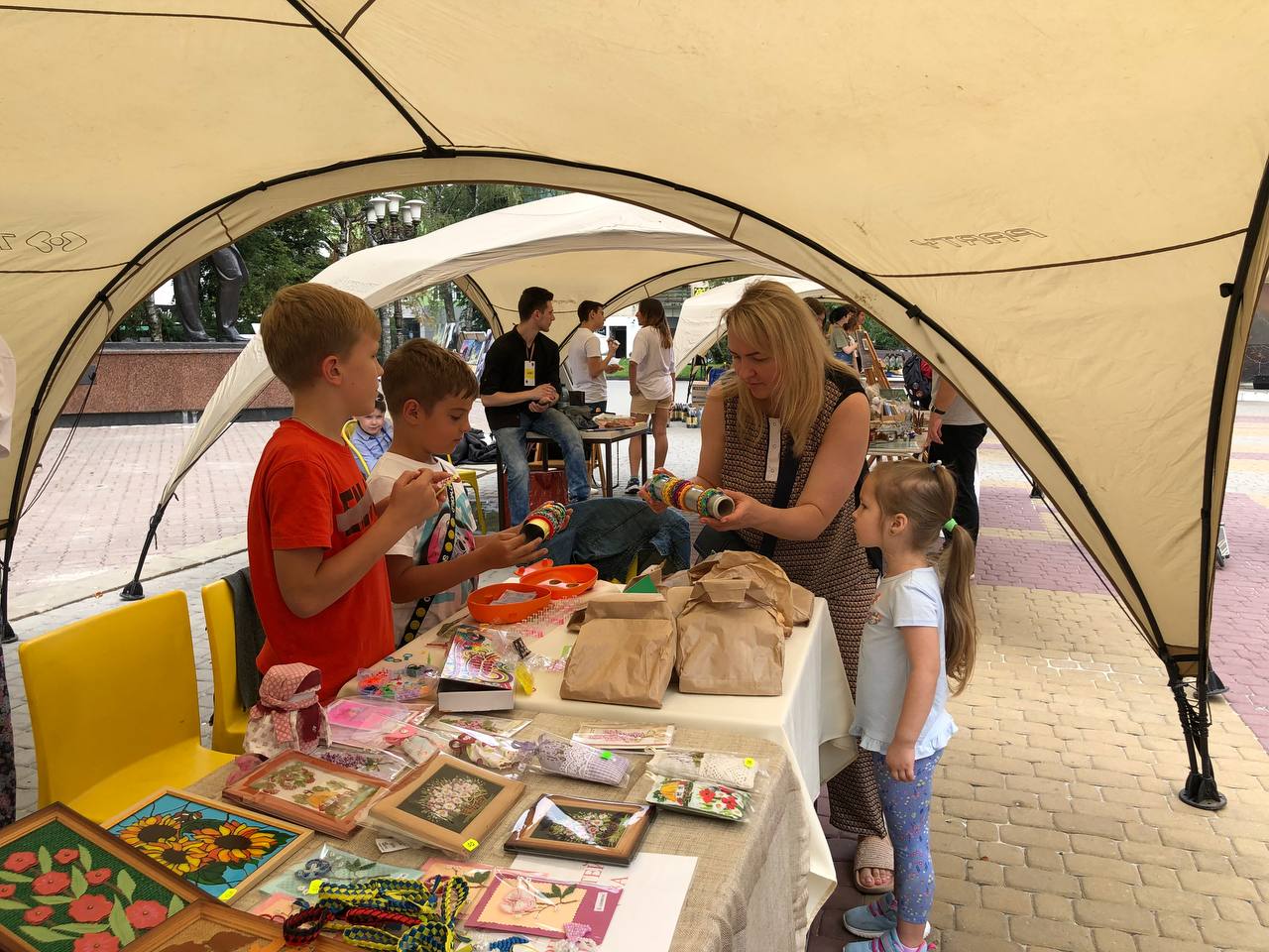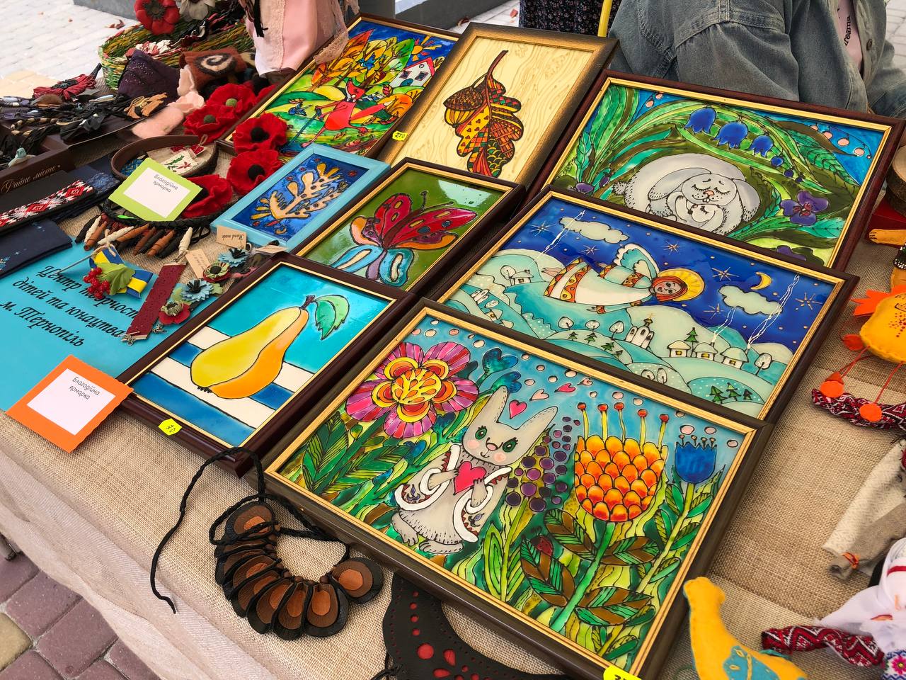 - На заході представили кілька сотень різноманітної продукції: від патріотичних листівок до авторських футболок. Учасниками заходу стали як 10 відомих майстрів Тернопільщини, так і малі діти.