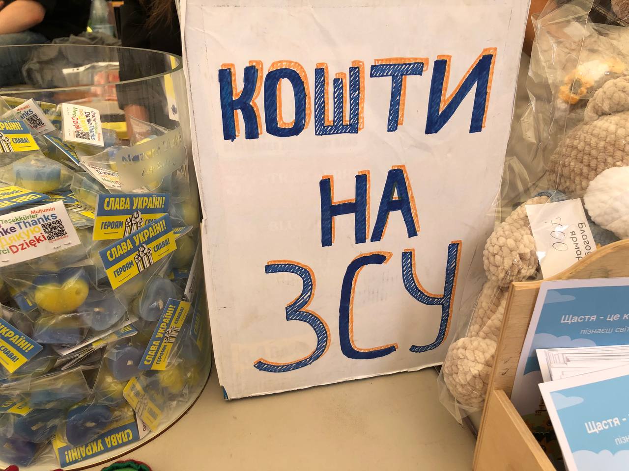 Шопери з проукраїнськими написами, іграшки ручної роботи, брелки, картини та навіть патріотичні круасани – асортимент на ярмарку був чималий. Зі слів менеджерки з логістики «Молодіжний центр Тернополя» Юлії Бугери, все вдалось завдяки підтримки людей.