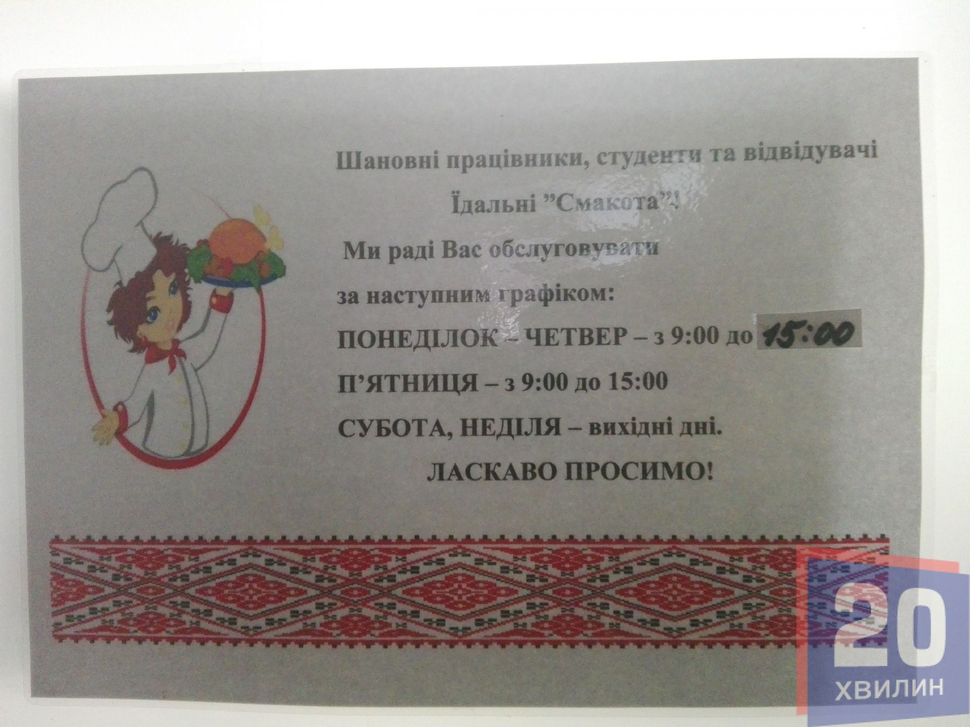 Цикл публікацій про тернопільські їдальні продовжує "20 хвилин". Ми перевіряємо популярні їдальні міста, де можна швидко та недорого поїсти. Звертаємо увагу на ціни, санітарію, обслуговування закладу. А прочитати про це ви можете щопонеділка о 19.00.