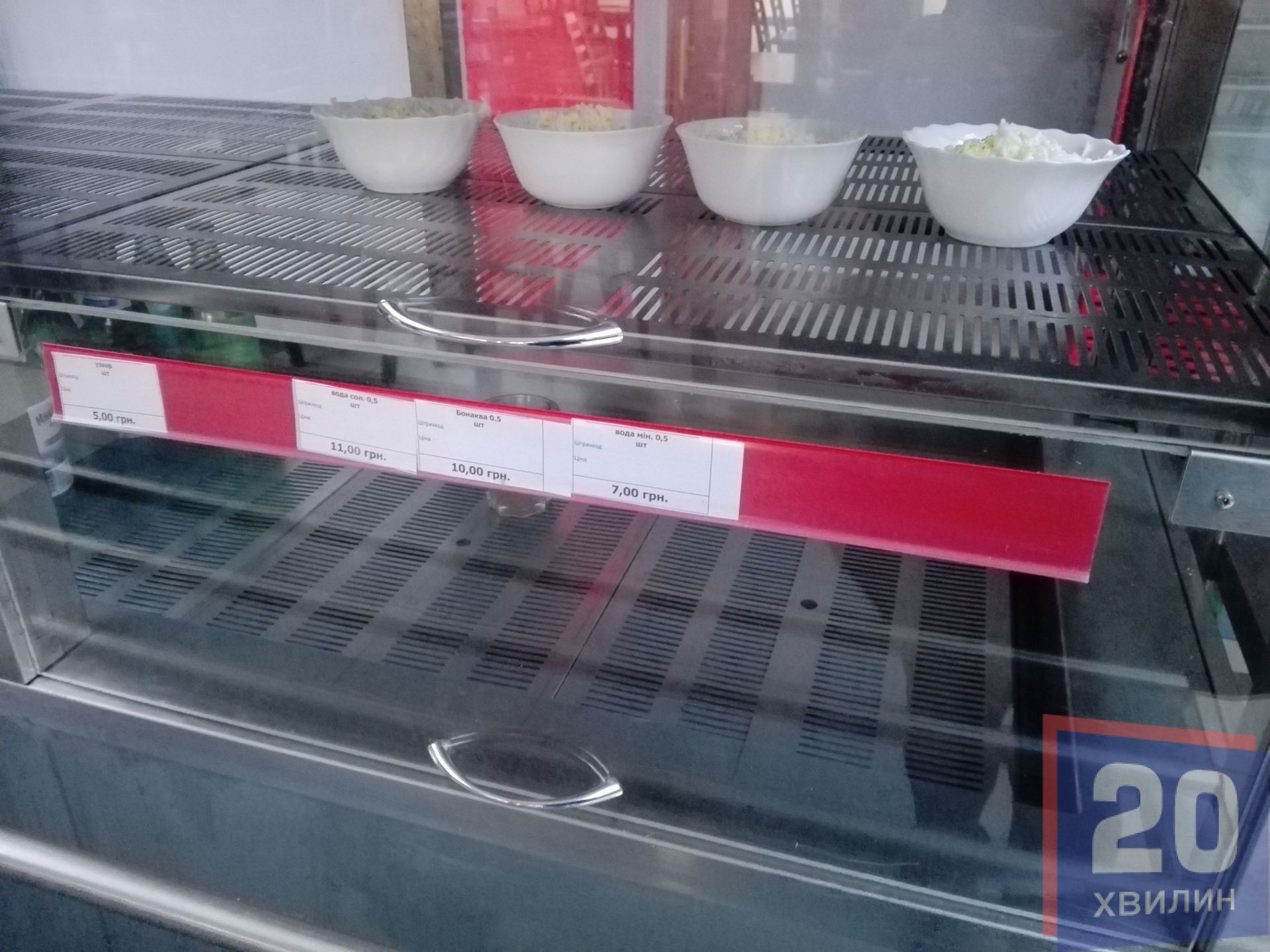 Меню та ціни. У їдальні завжди великий вибір у меню. Цінники розклеєні безепосередньо на буфеті над кожною стравою. На перше, наприклад, можна замовити грибну юшку чи борщ. На гарнір - картопляне чи горохове пюре, рис з овочами, гречку. До гарніру - курячі котлети, домашню ковбасу. Є салати, наприклад, з бурячка, плавленого сиру та яєць. З напоїв можна замовити сік, каву, чай. Повноцінний обід коштуватиме в середньому 45-50 грн.