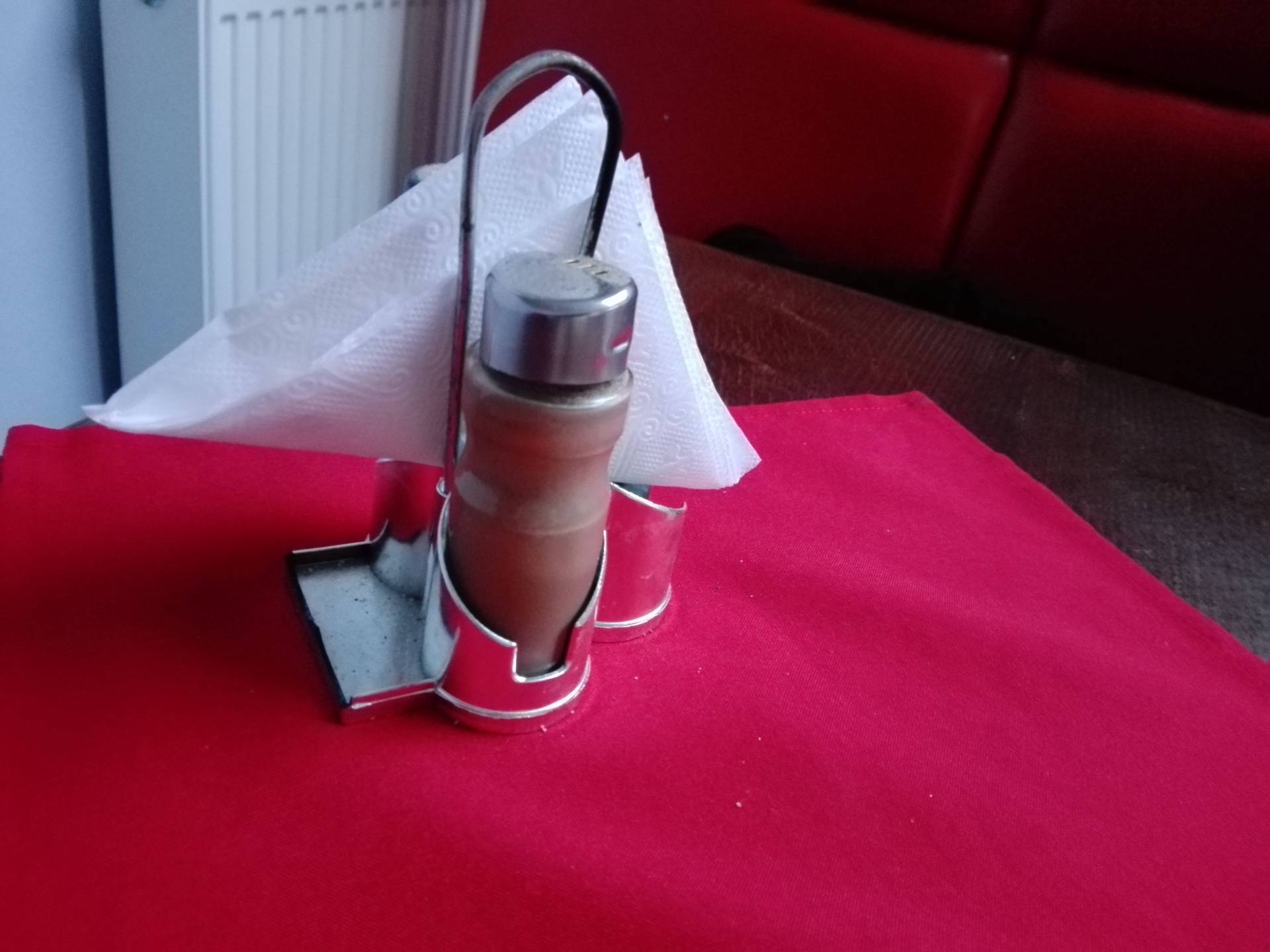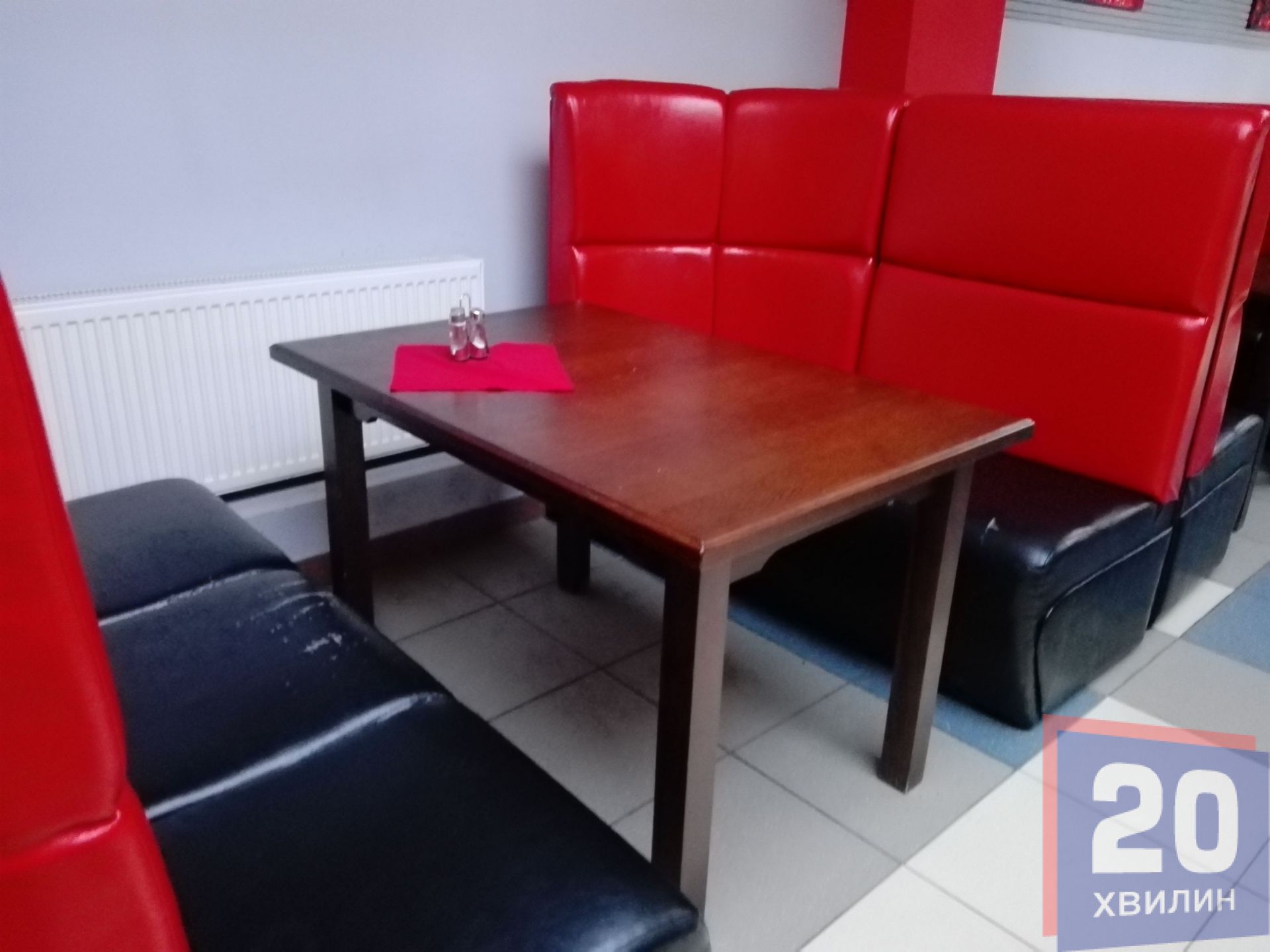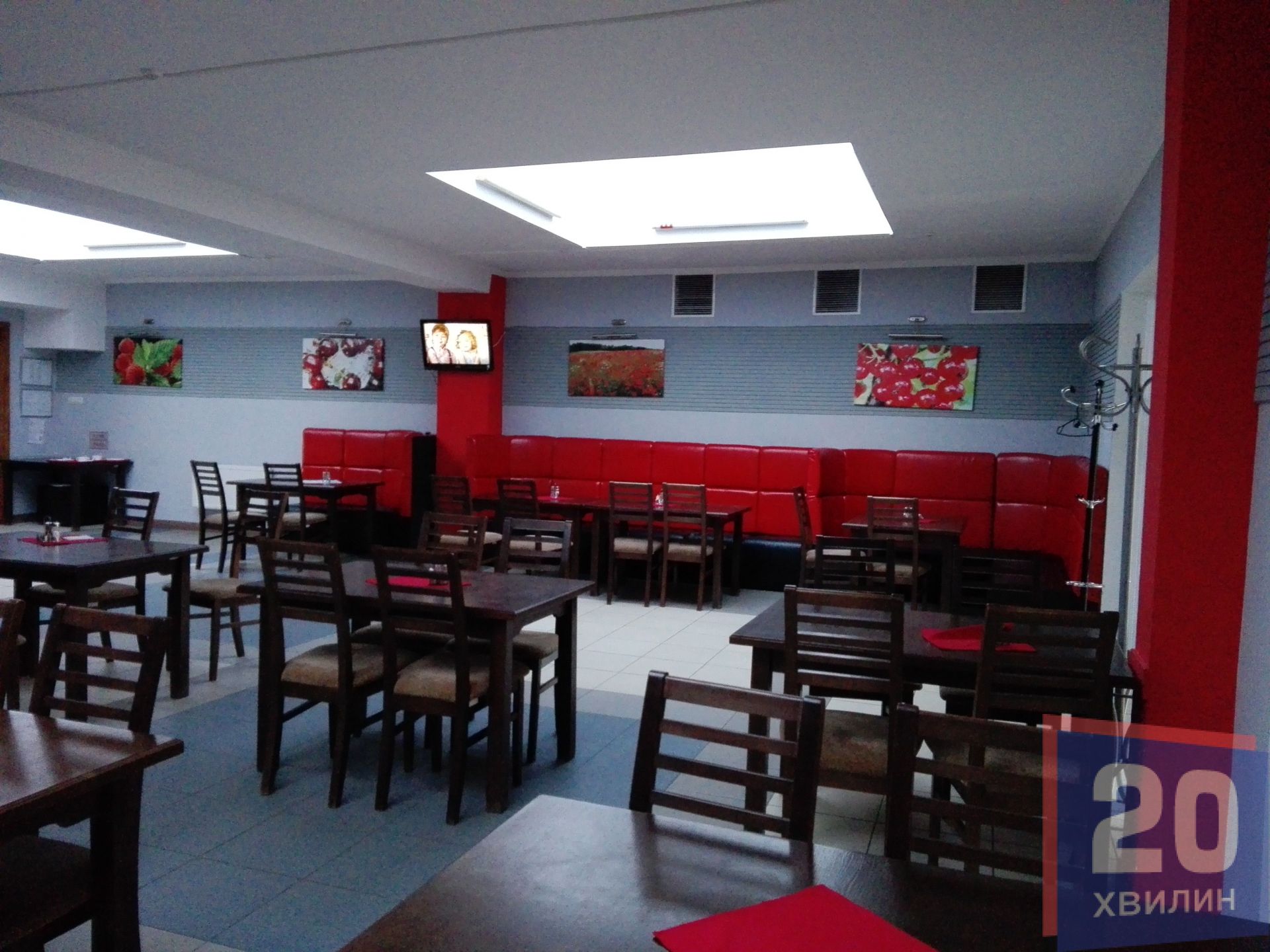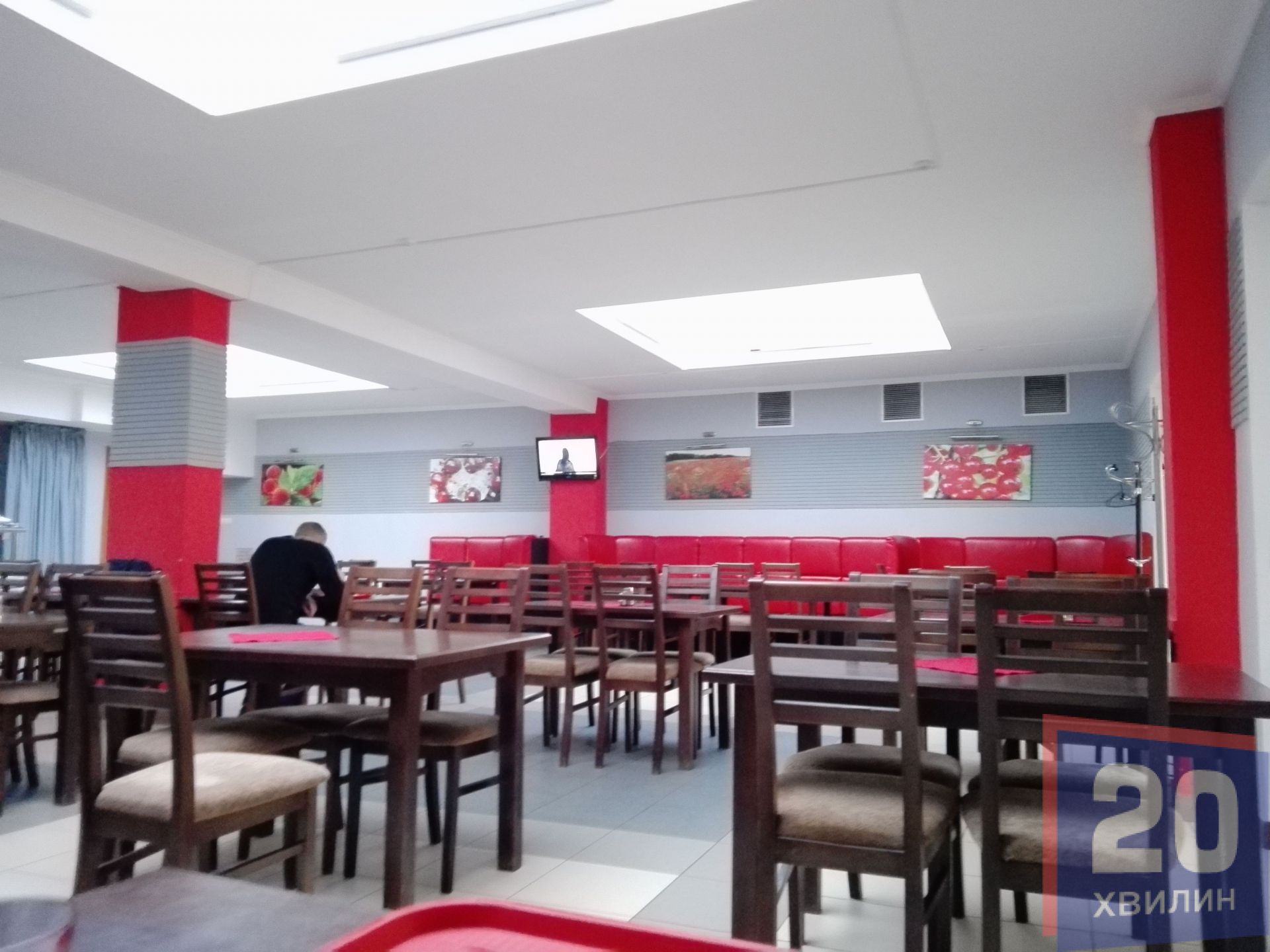 Інтер'єр. Приміщення їдальні велике у червоно-білих тонах. Столи та крісла нові, чисті. Є кілька столиків з диванчиками. На стінах висять картини з підсвіткою. При вході у їдальню є два вішаки для одягу. У кінці залу буфет, в якому є порційні салати. Також, стоять чисті підноси, виделки та ложки. Перші та другі страви, а також гарніри стоять в обладнанні для підігріву їжі.