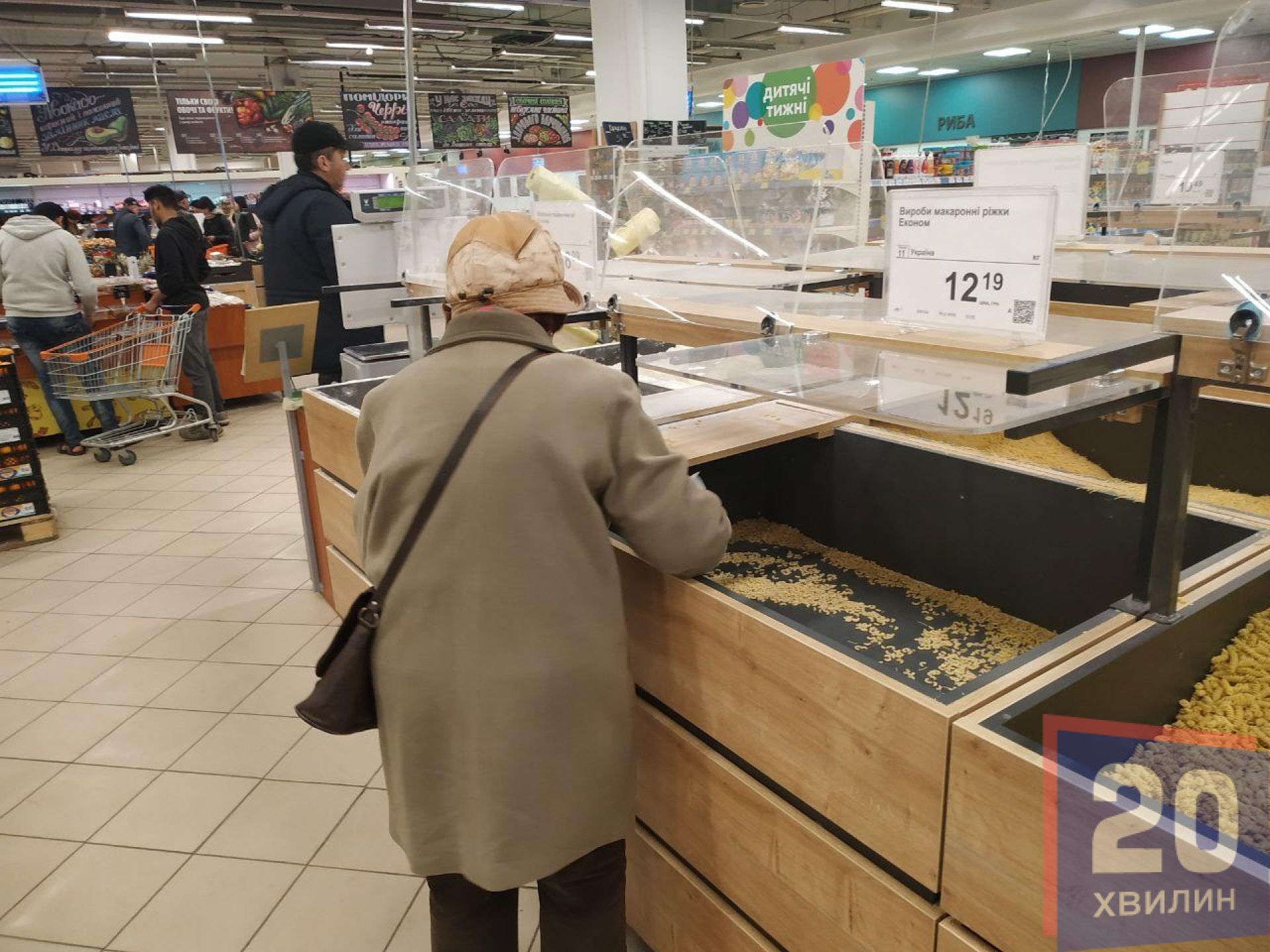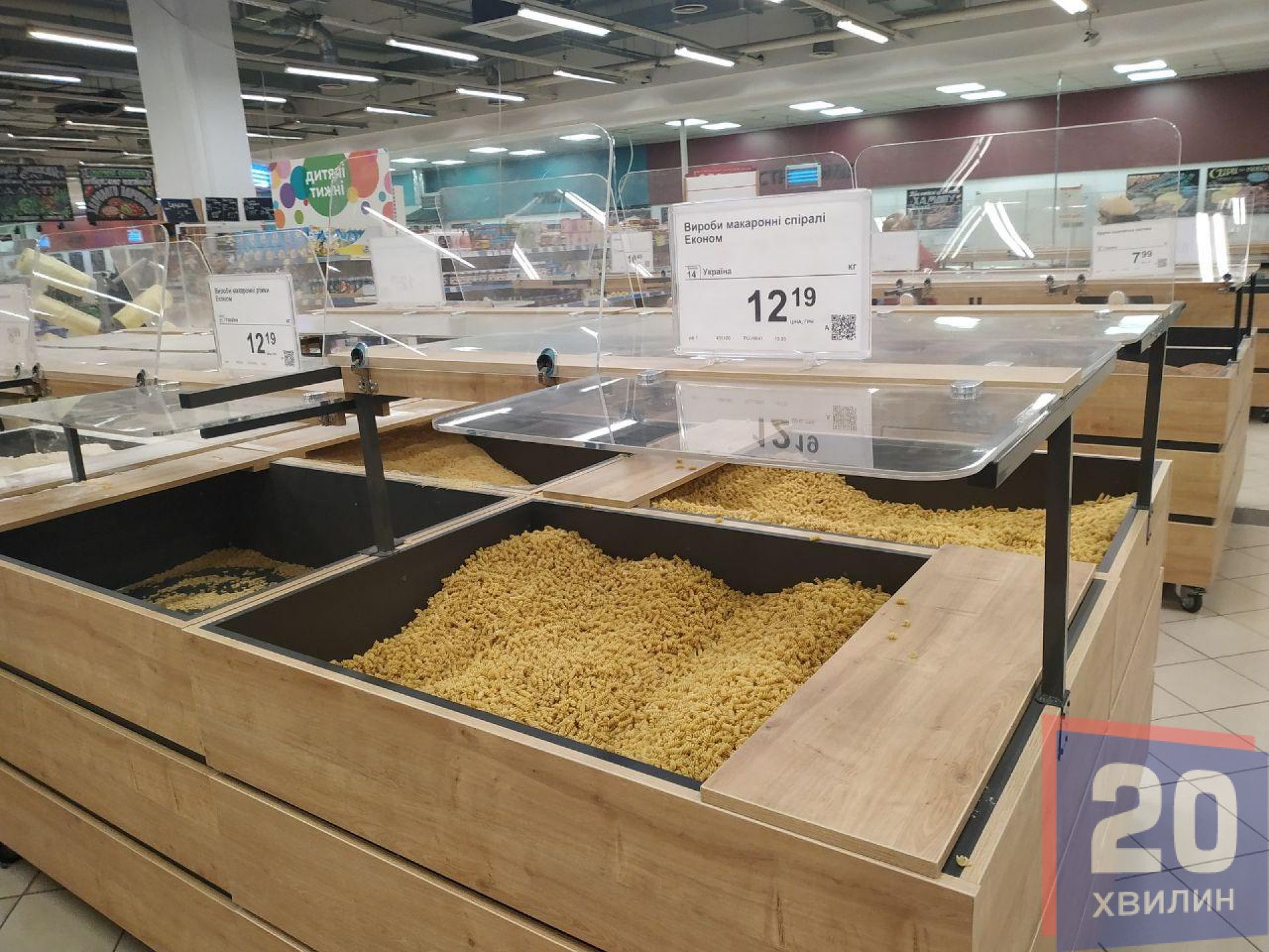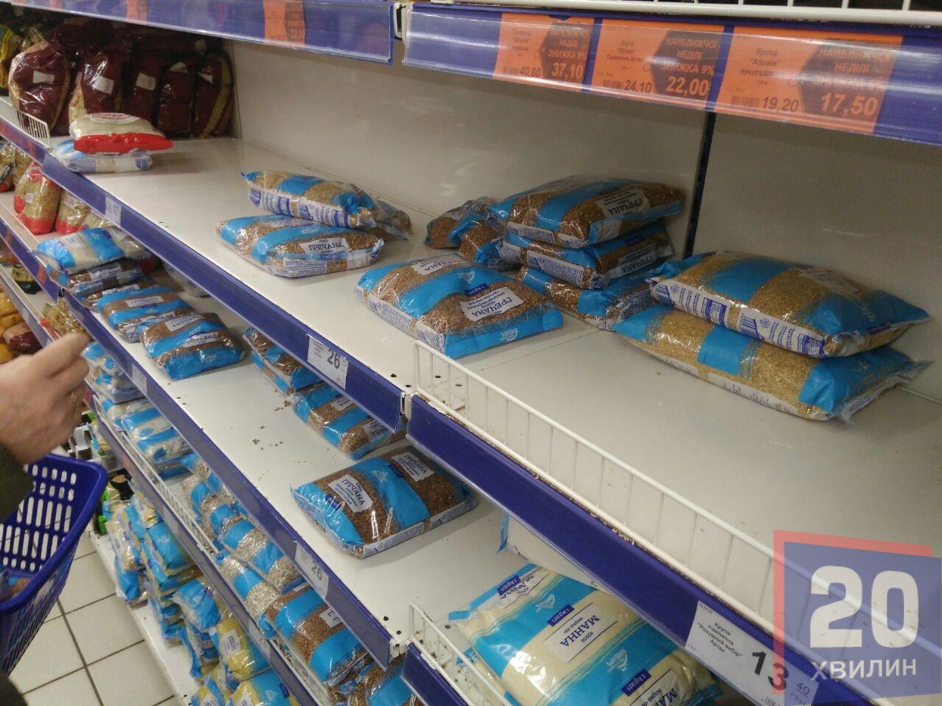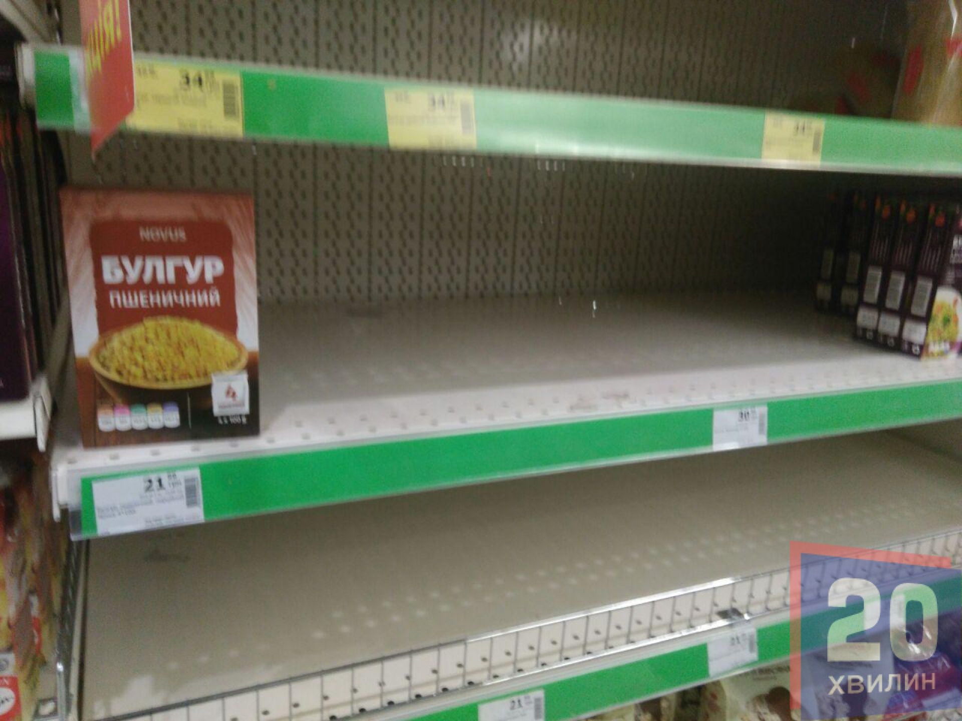 У супермаркетах деякі полиці були пусті. Це переважно полиці з найдешевшими крупами та макаронами. Персонал розповідав, що дефіциту немає, просто товар не встигають вкладати на полиці. Його швидко скуповують.
