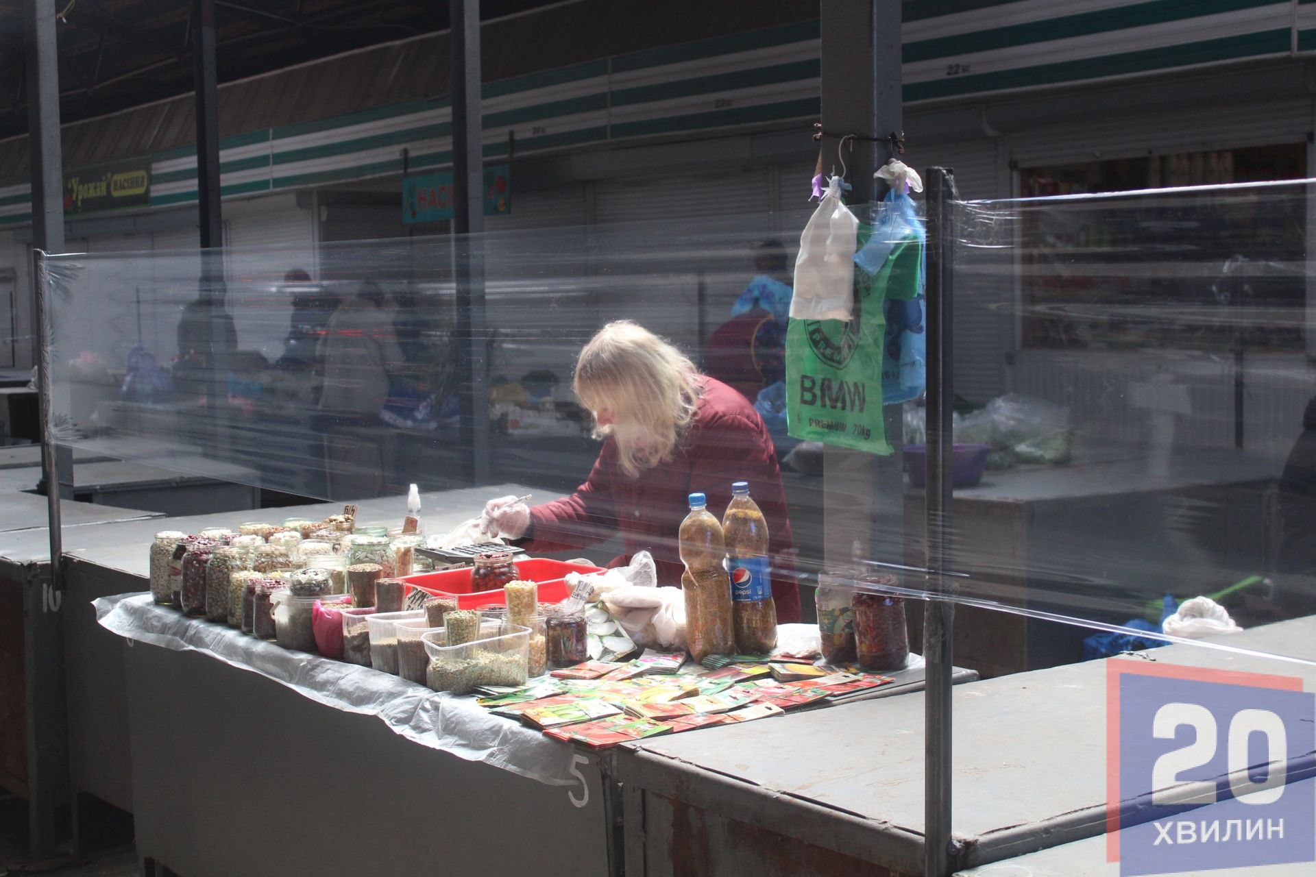 Як помітили журналісти «20 хвилин», усі продавці працюють в масках та рукавичках. Правила ніхто не ігнорує. Дехто навіть має антисептики для себе та покупців. На стелажах облаштували захисні екрани з плівки. У деяких кіосках таких екранів немає, але свою продукцію продавці накривають плівкою.