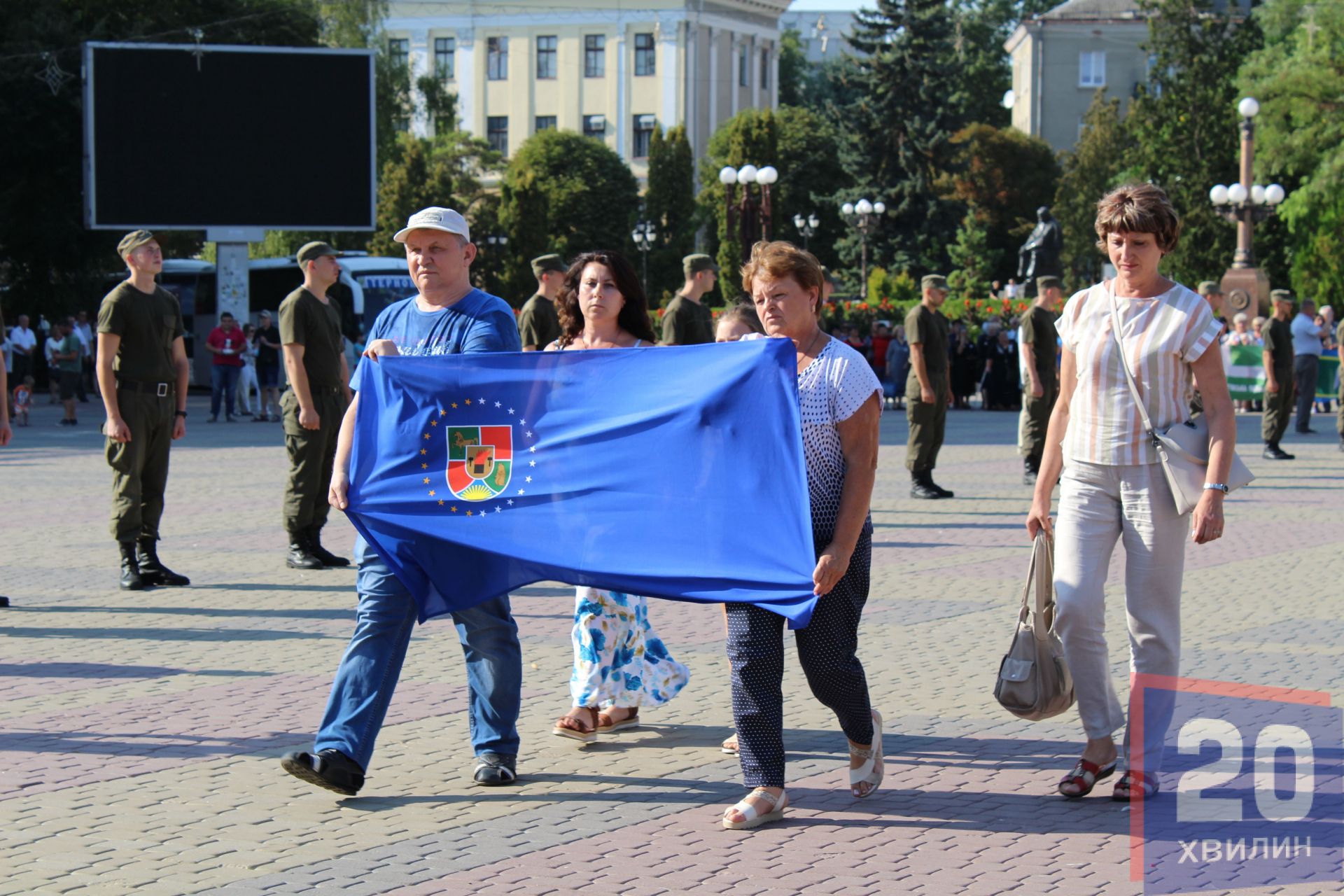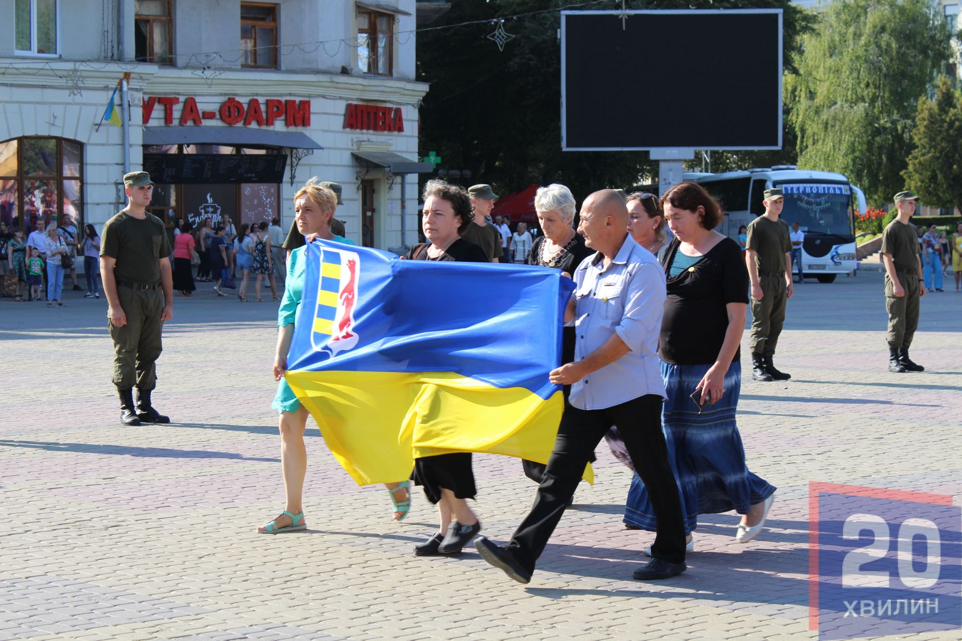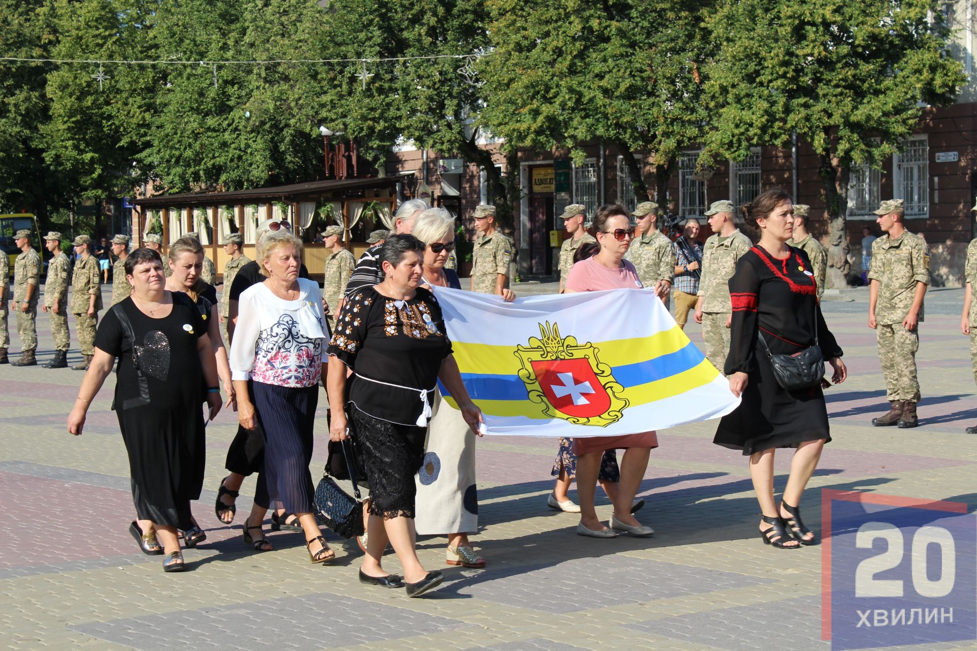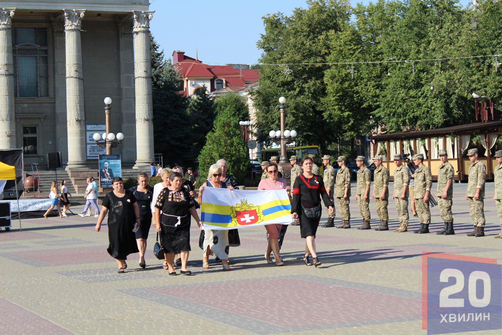 На Театральному майдані родини пронесли між військовими прапори своїх областей. Серед них Тернопільська, Волинська, Чернігівська, Дніпропетровська, Житомирська, Закарпатська, Запорізька та інші області.