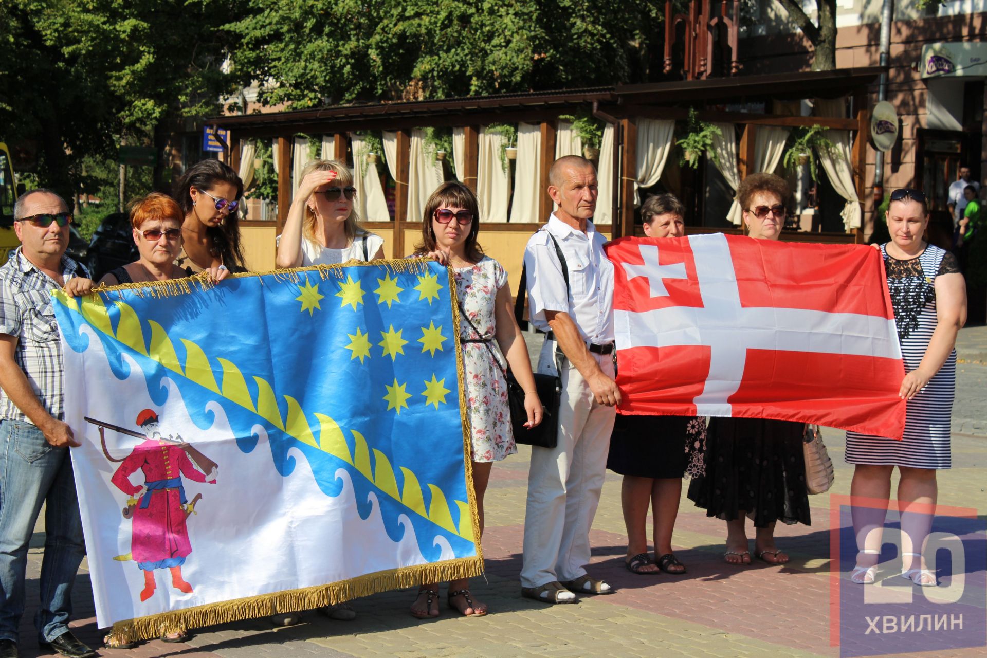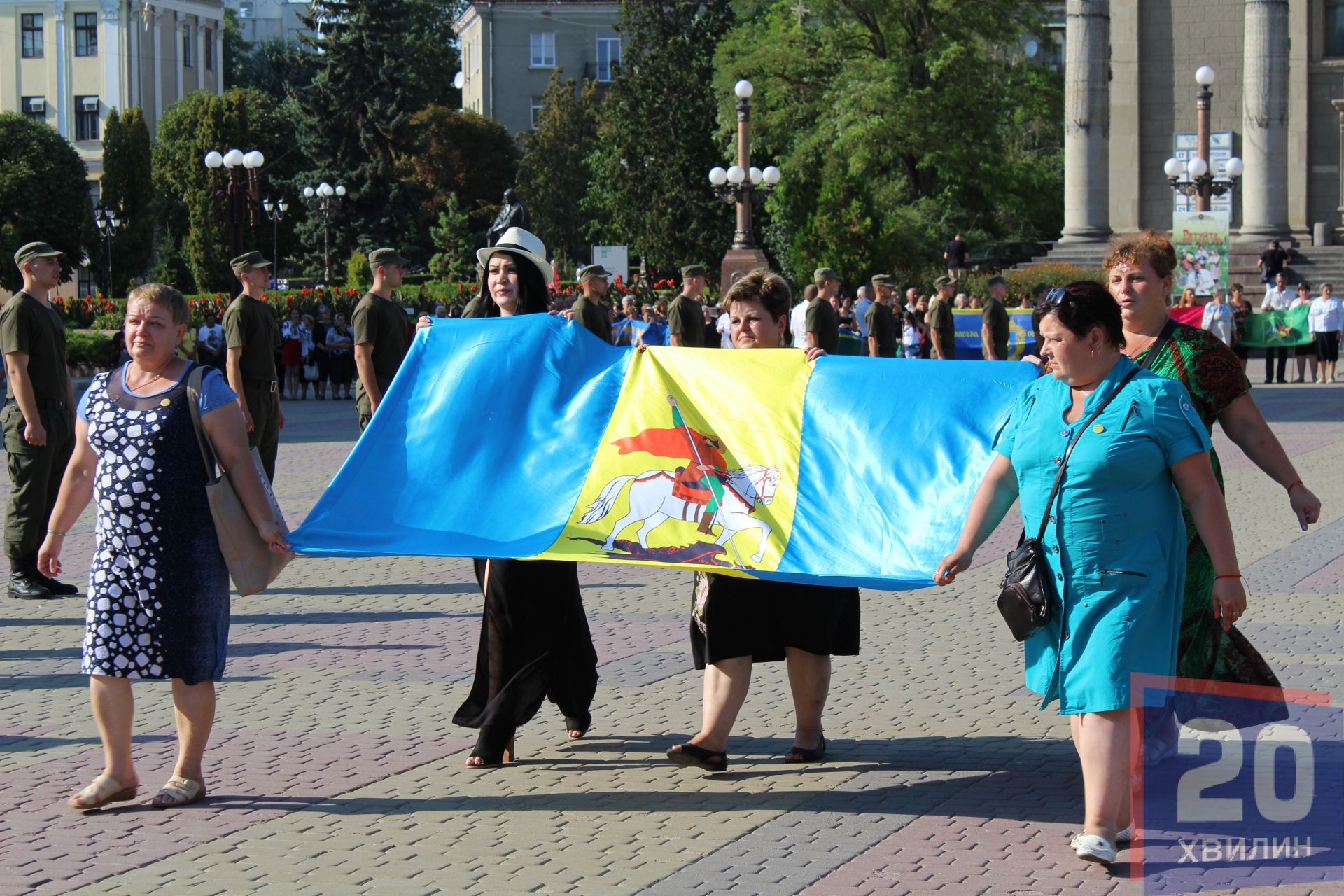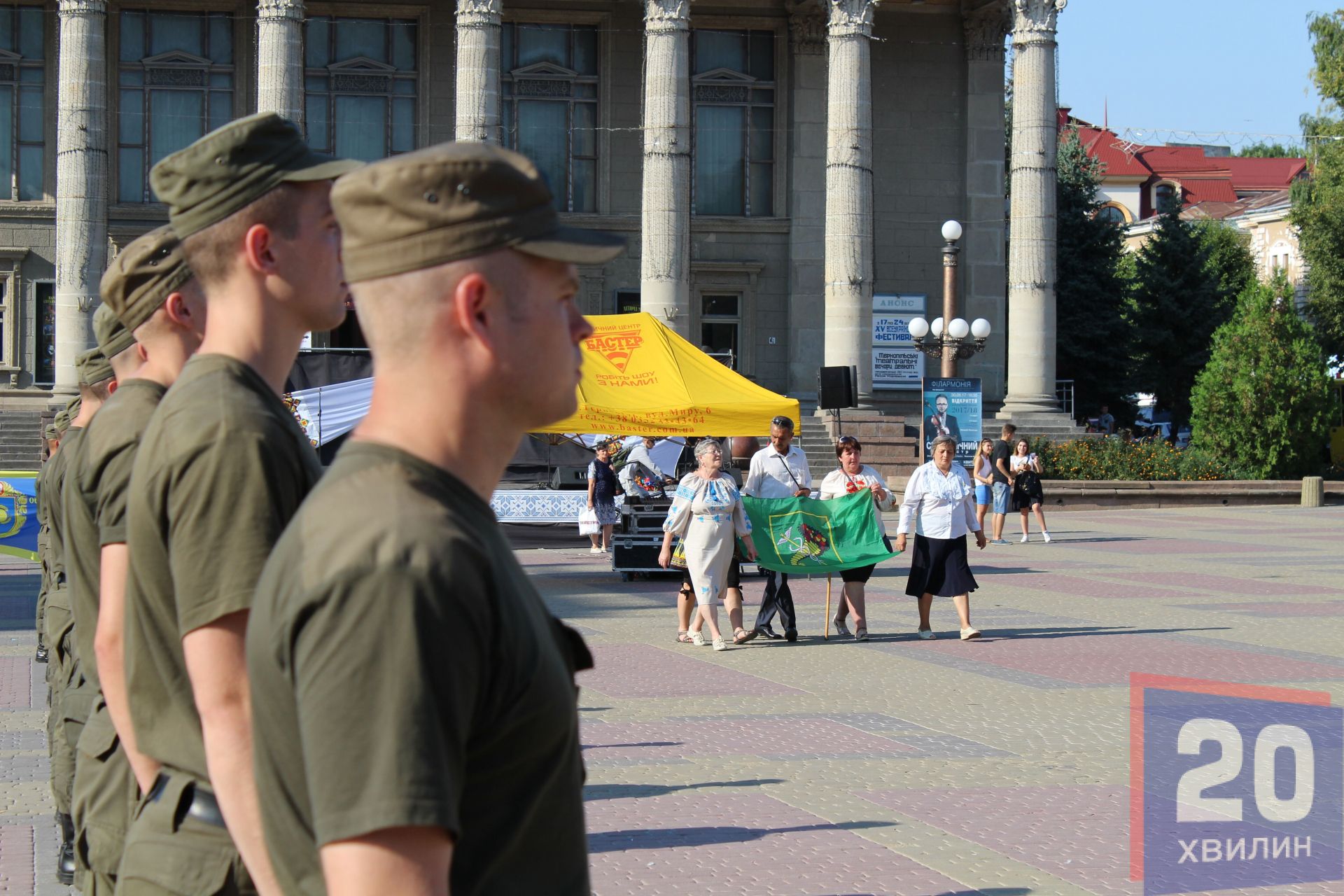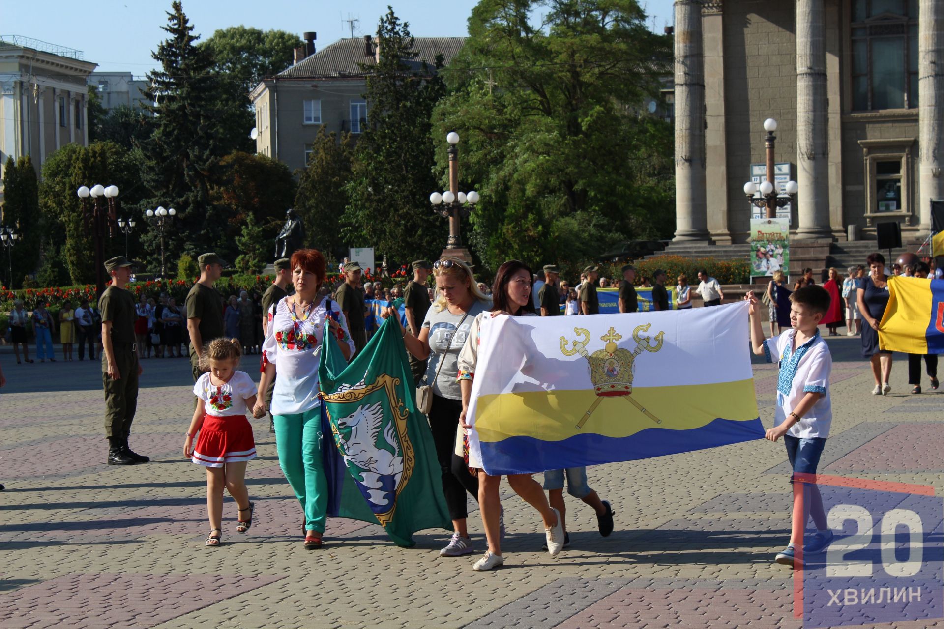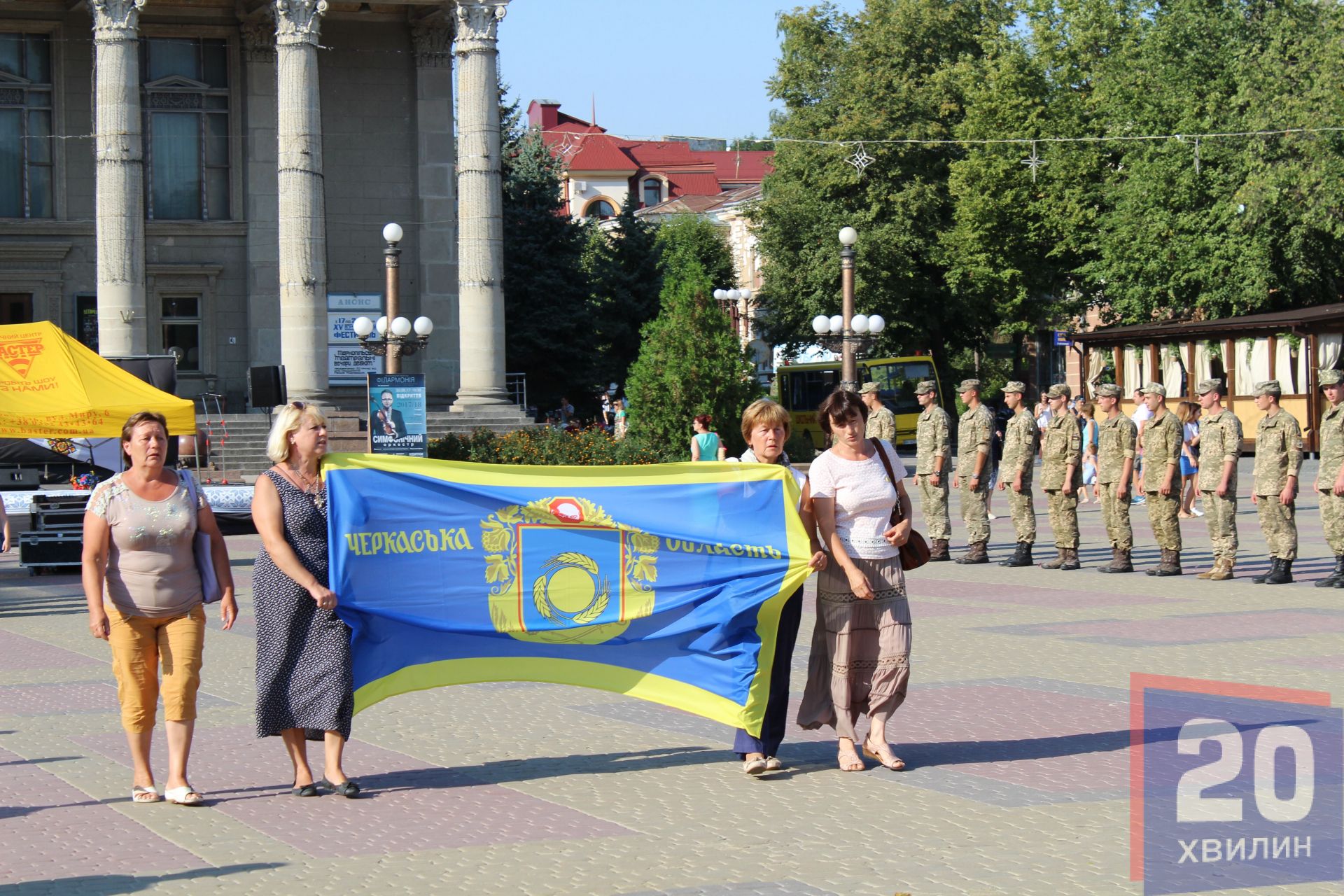 На Театральному майдані родини пронесли між військовими прапори своїх областей. Серед них Тернопільська, Волинська, Чернігівська, Дніпропетровська, Житомирська, Закарпатська, Запорізька та інші області.