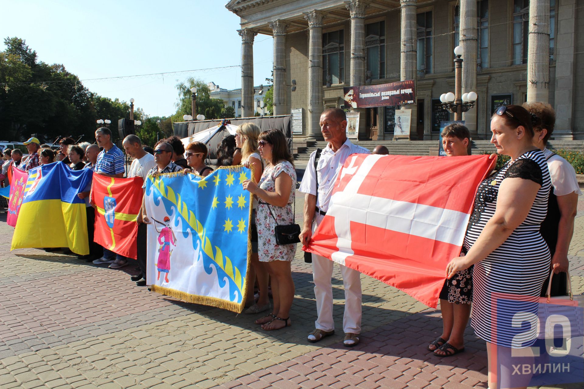 В рамках акції «Єдина родина України» близько 300 членів родин військових різних областей, які загинули в АТО зібрались на Театральному майдані 19 серпня.