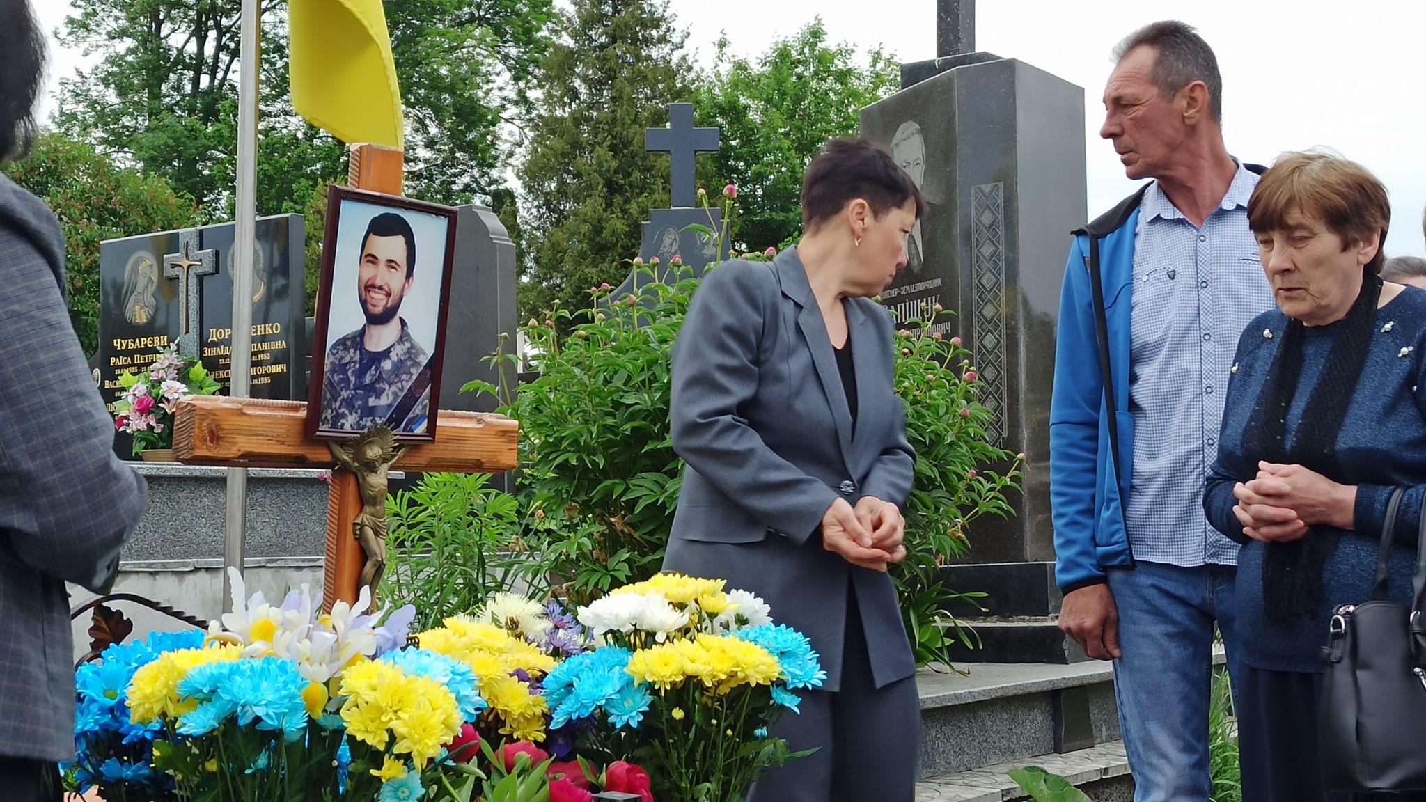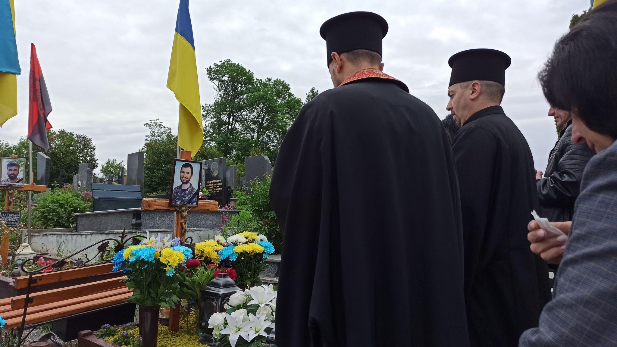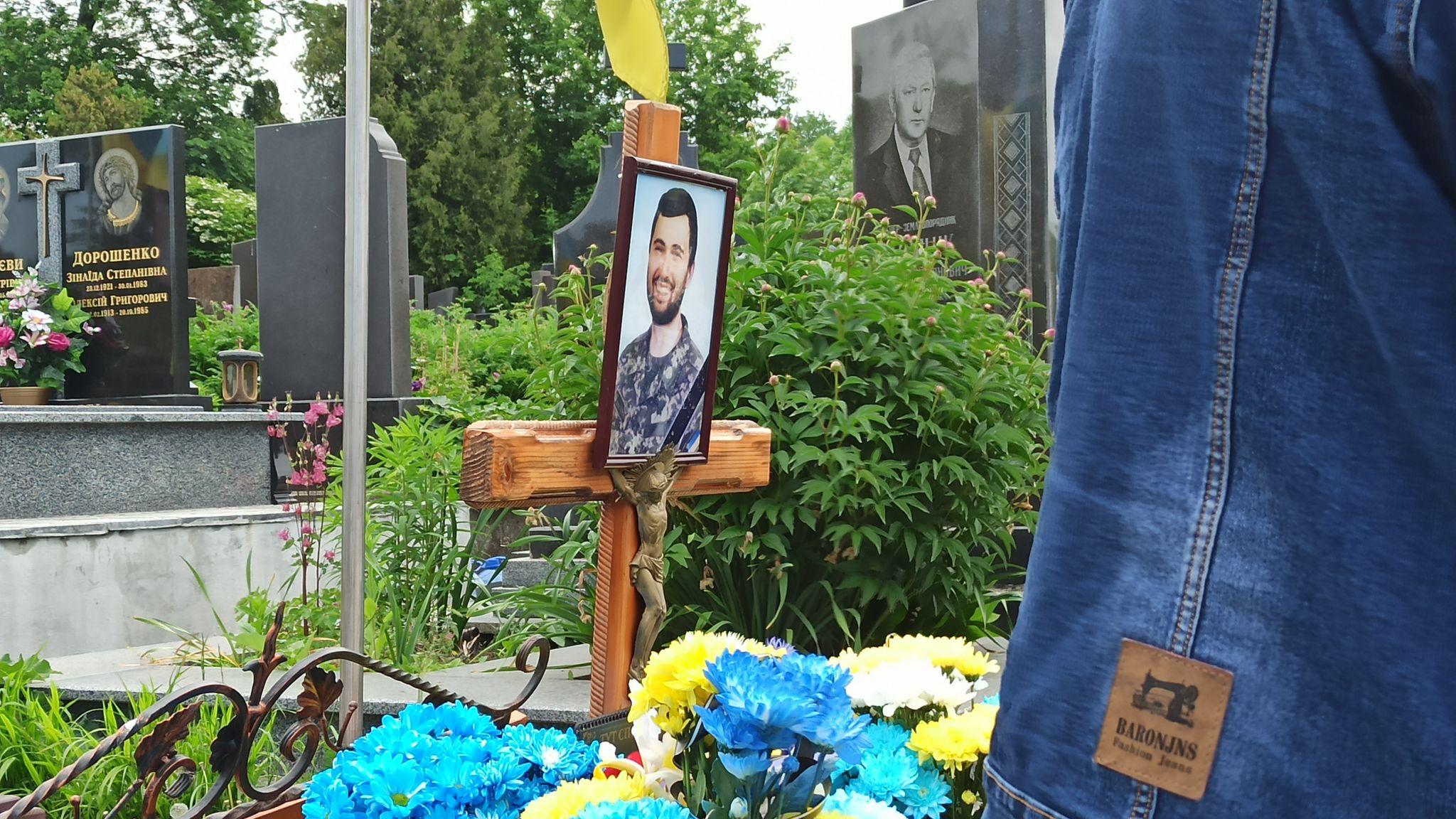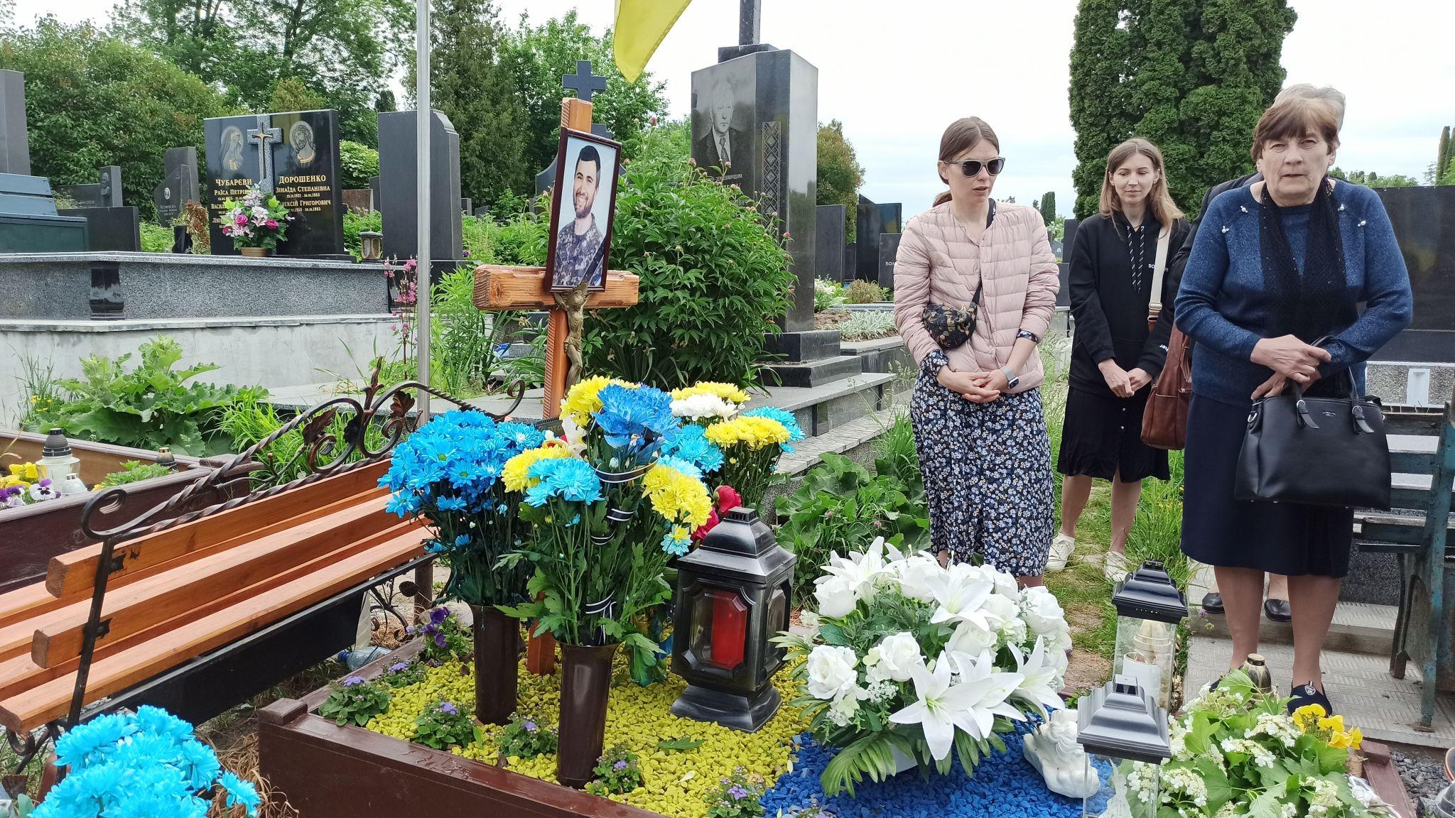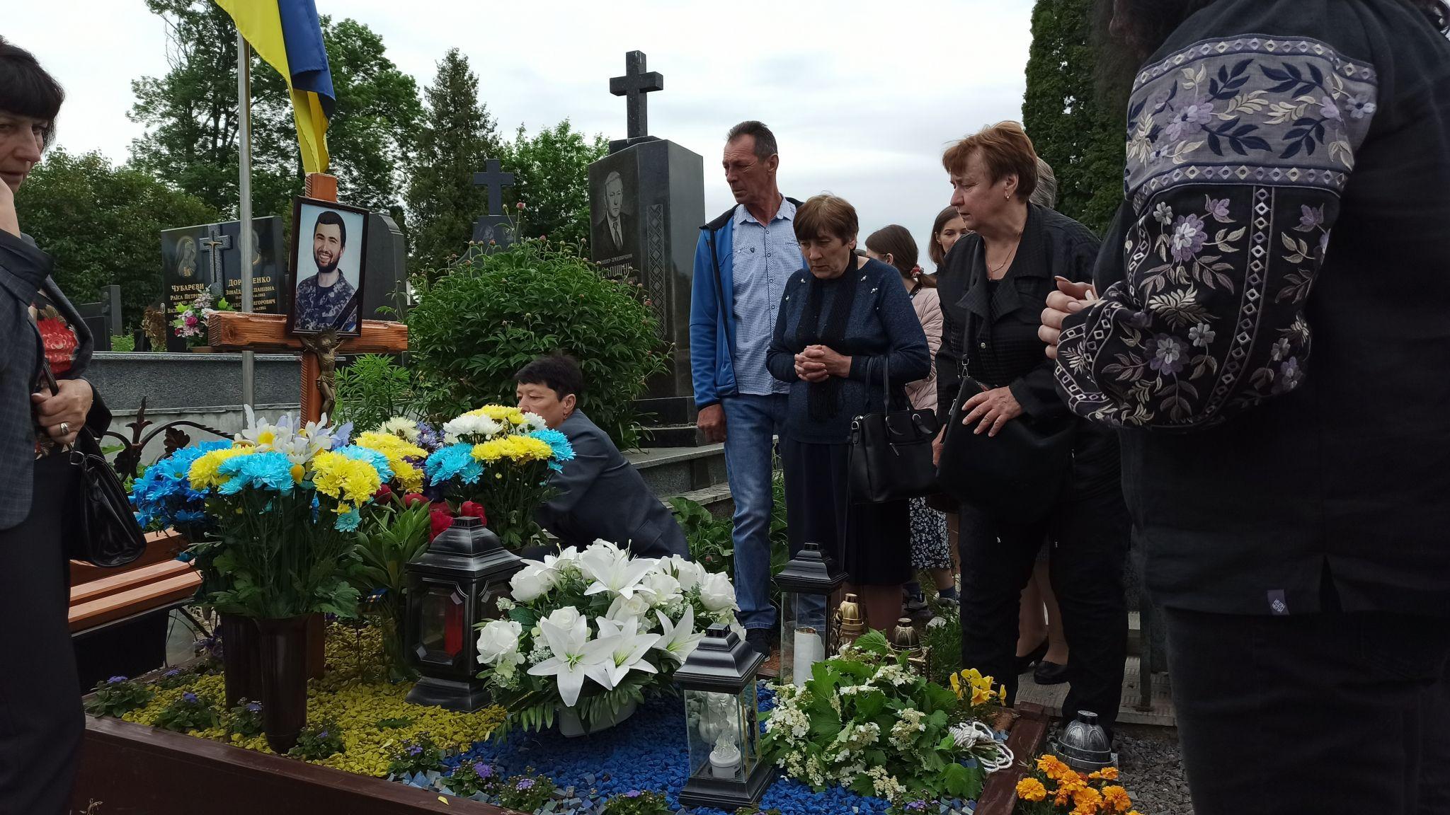 На кладовищі зібрались найближчі люди військового, друзі, колеги, десятки небайдужих містян, які знали його за життя. На могилі — букети квітів, горять лампадки.