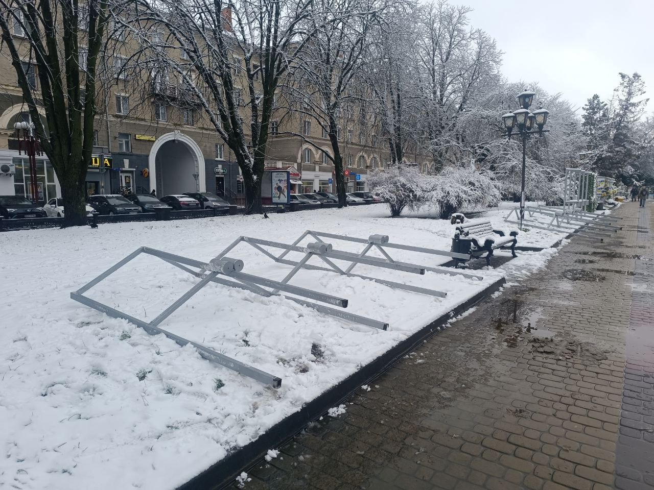 Чотири нові конструкції на яких розміщуватимуть портрети загиблих воїнів встановлюють на бульварі Шевченка біля пам’ятника Соломії Крушельницької.