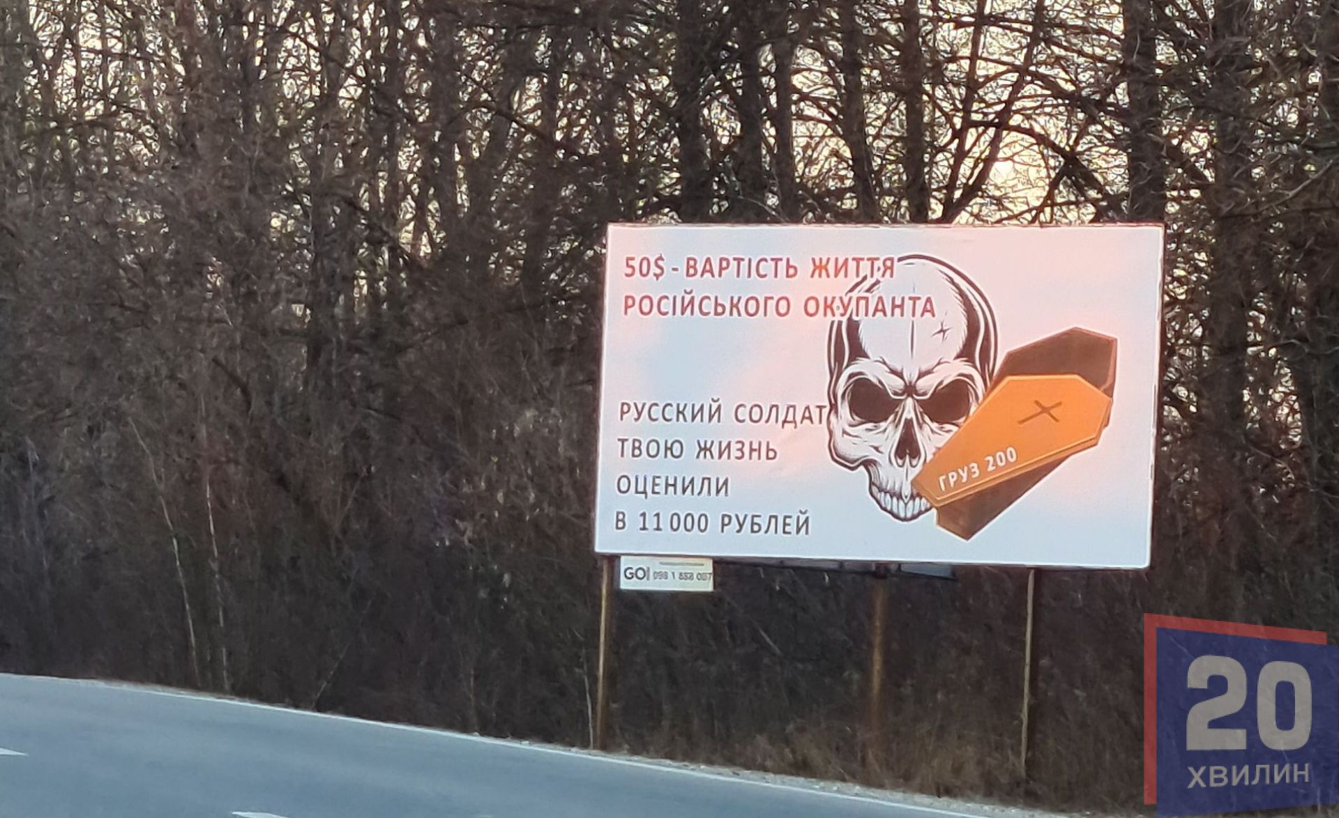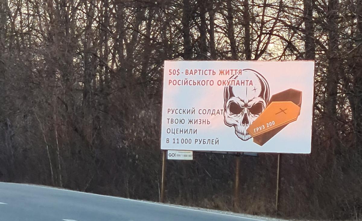 - «50$ - вартість життя російського окупанта. Русский солдат, твою жизнь оценили в 11 тысяч рублей».