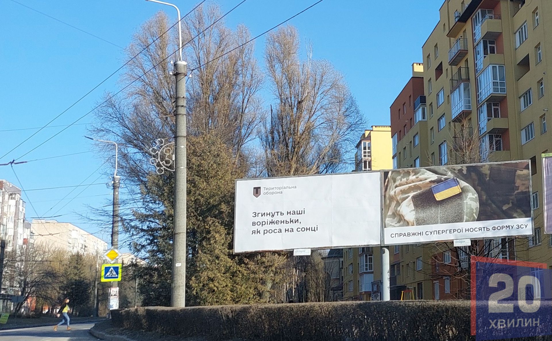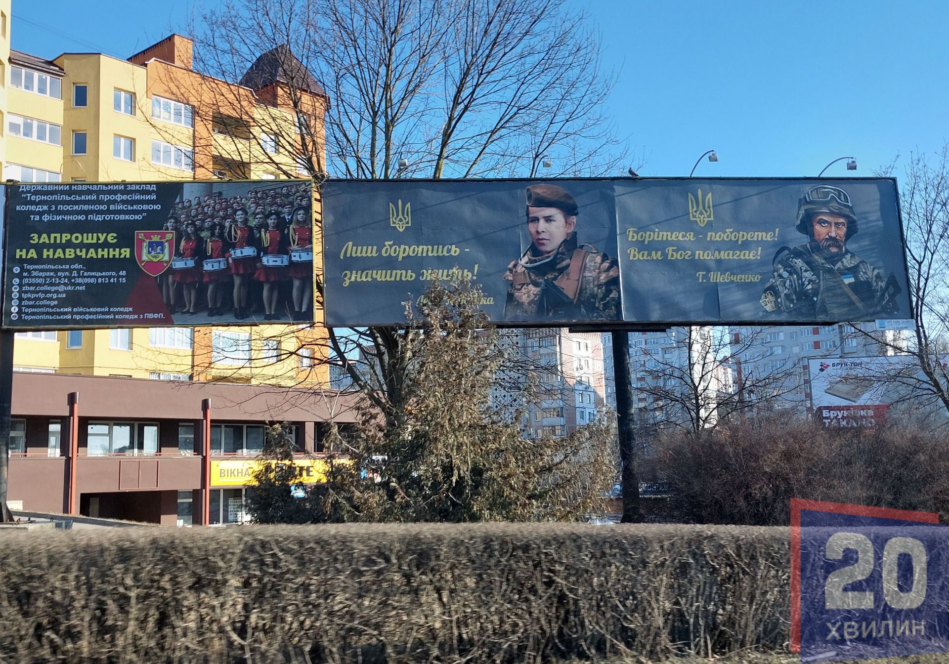 Іван Франко та Леся Українка тепер в одностроях. А на Тараса Шевченка, окрім форми, одягли ще й в каску. Дороги Тернополя та області рясніють патріотичними написами на біг-бордах, які змінили з «руського корабля», який має йти в певному напрямку.