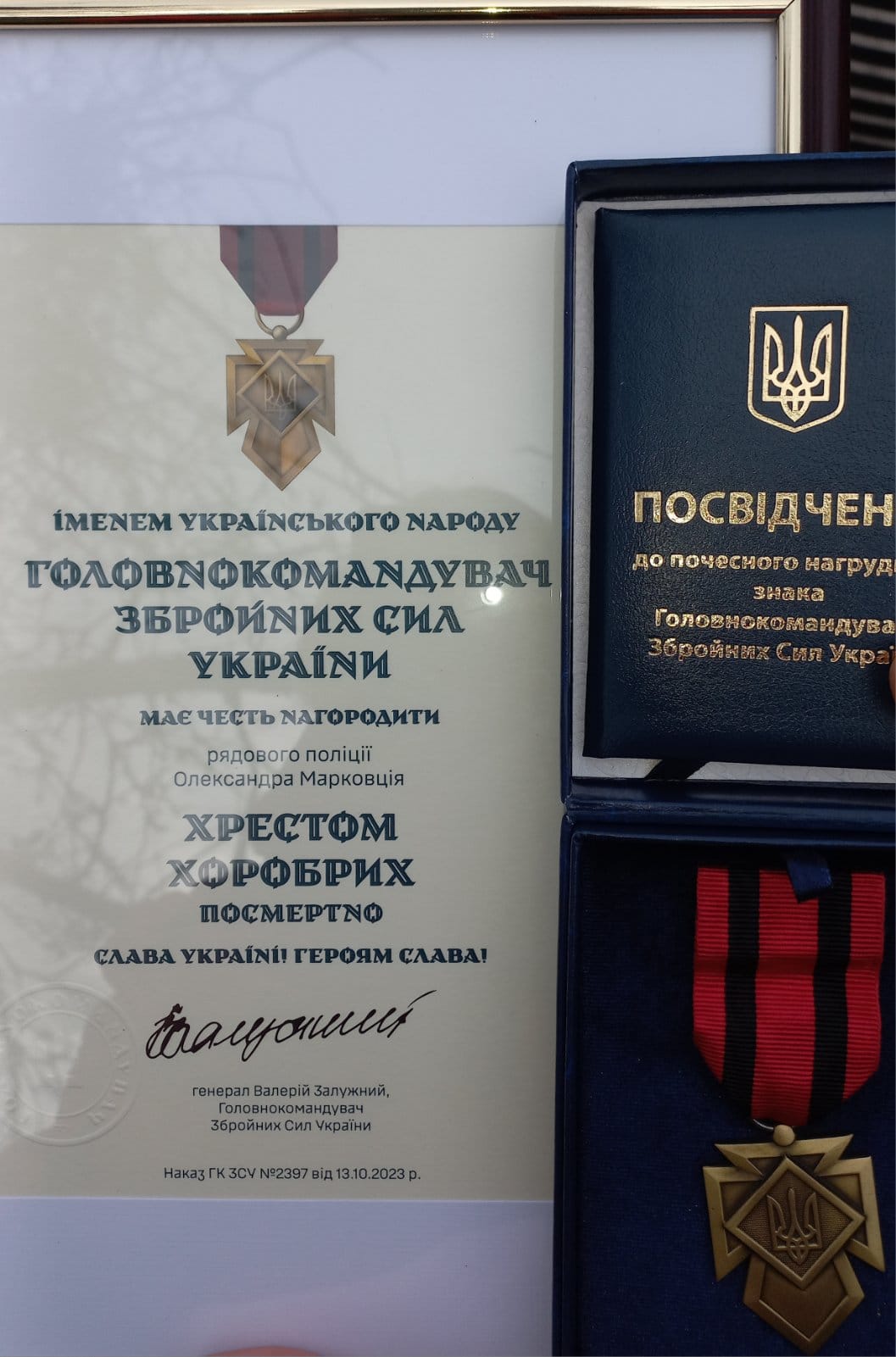 Рядового поліції з Шумщини Олександра Марковція посмертно нагородили Хрестом хоробрих від Залужного