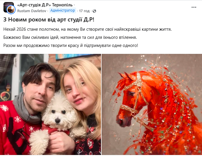 Власник одного з тернопільських салонів краси Миколай Онищук розмістив яскраве фото верхи на коні і побажав, щоб «новий рік приніс кожному сміливість бути собою, рухатися вперед без страху і сідати на свого коня тоді, коли серце каже «час».